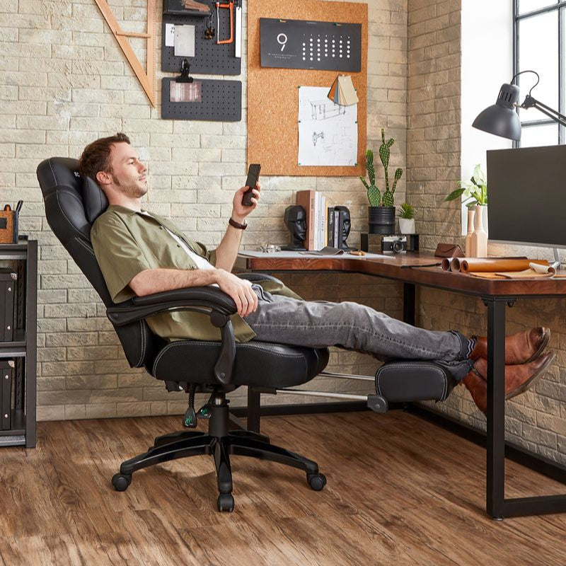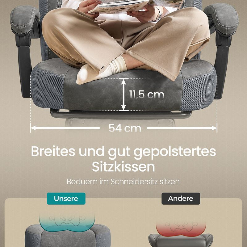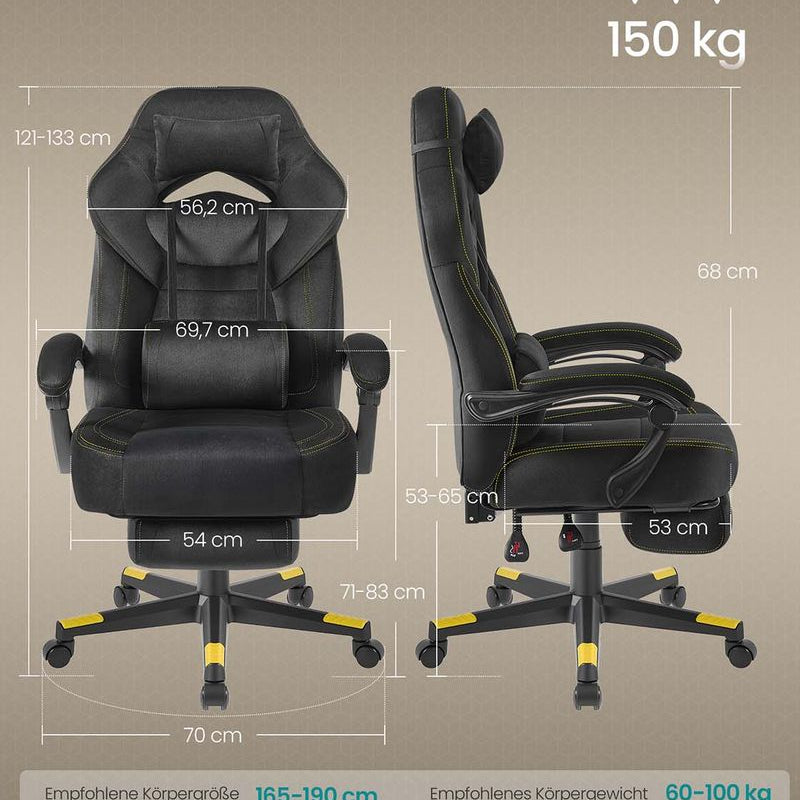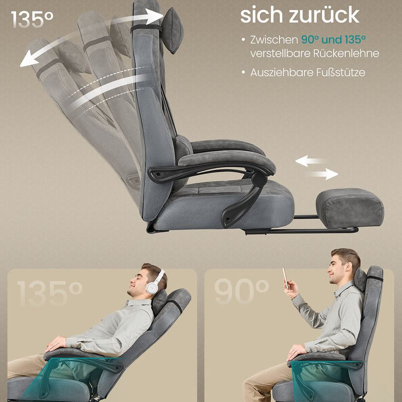 Gaming-Stuhl mit Fußstütze – ergonomisch – neigbar – extra dicke Sitzfläche – höhenverstellbar