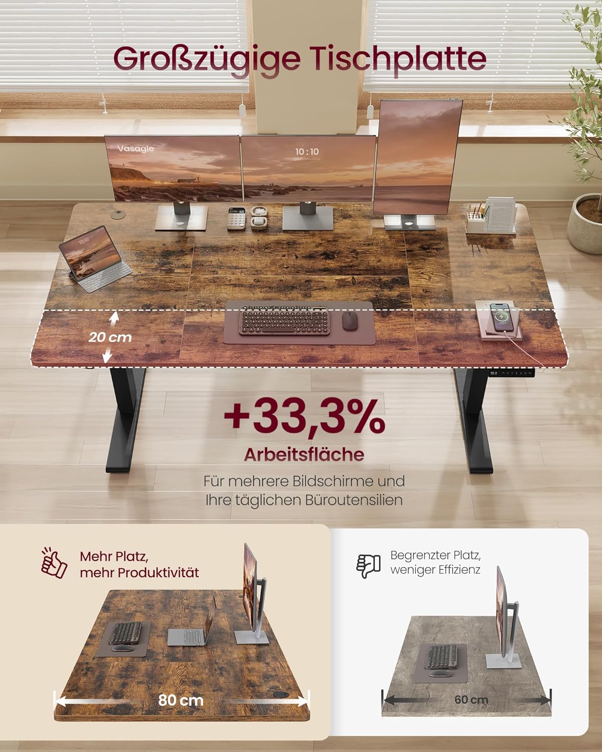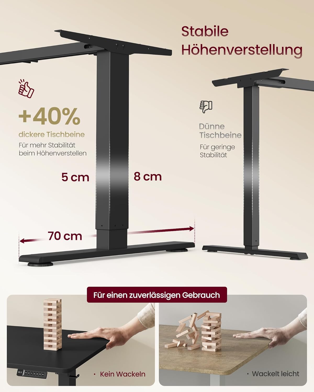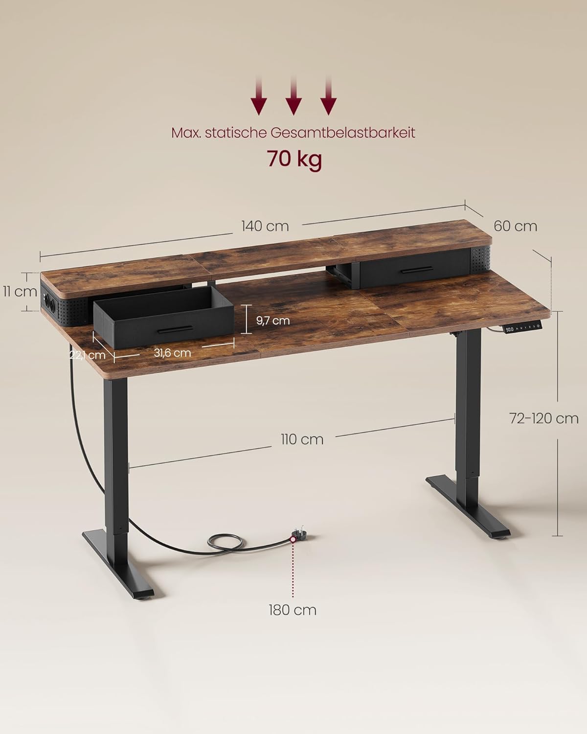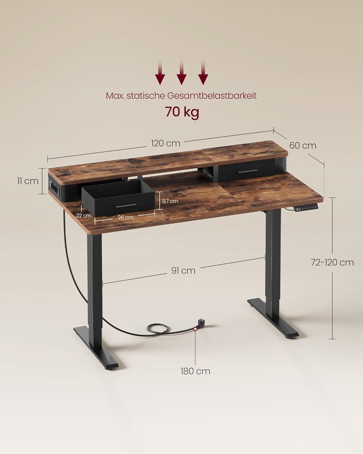 Elektrisch höhenverstellbarer Schreibtisch – 4 Speicherplätze – USB-C-Schnellladefunktion – 120 bis 180 x 80 cm