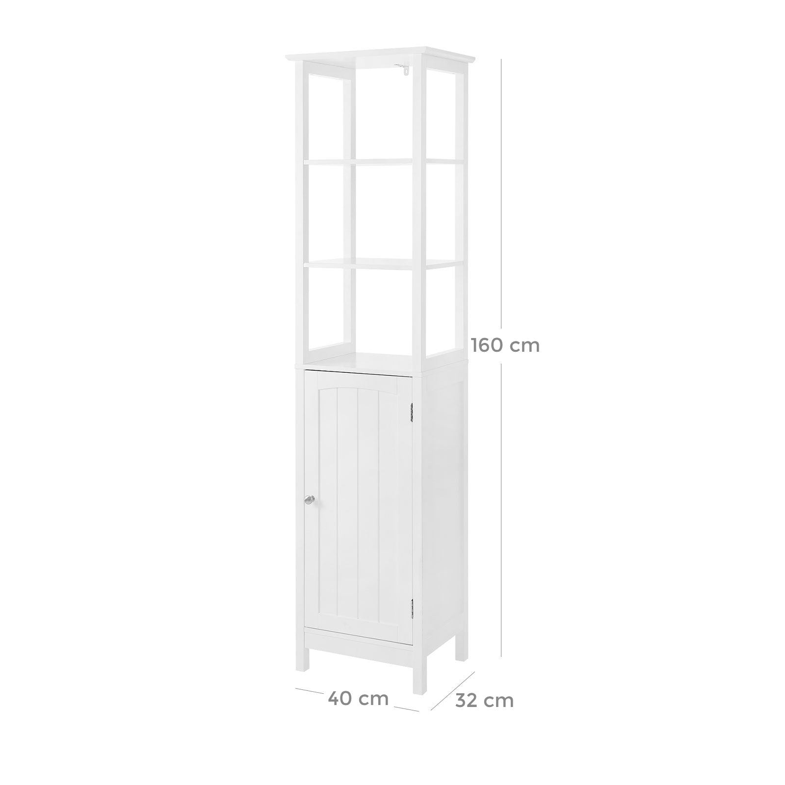 Badezimmer-Hochschrank mit Tür und offenen Regalen – 160 cm hoch – für Badezimmer, Küche oder Flur