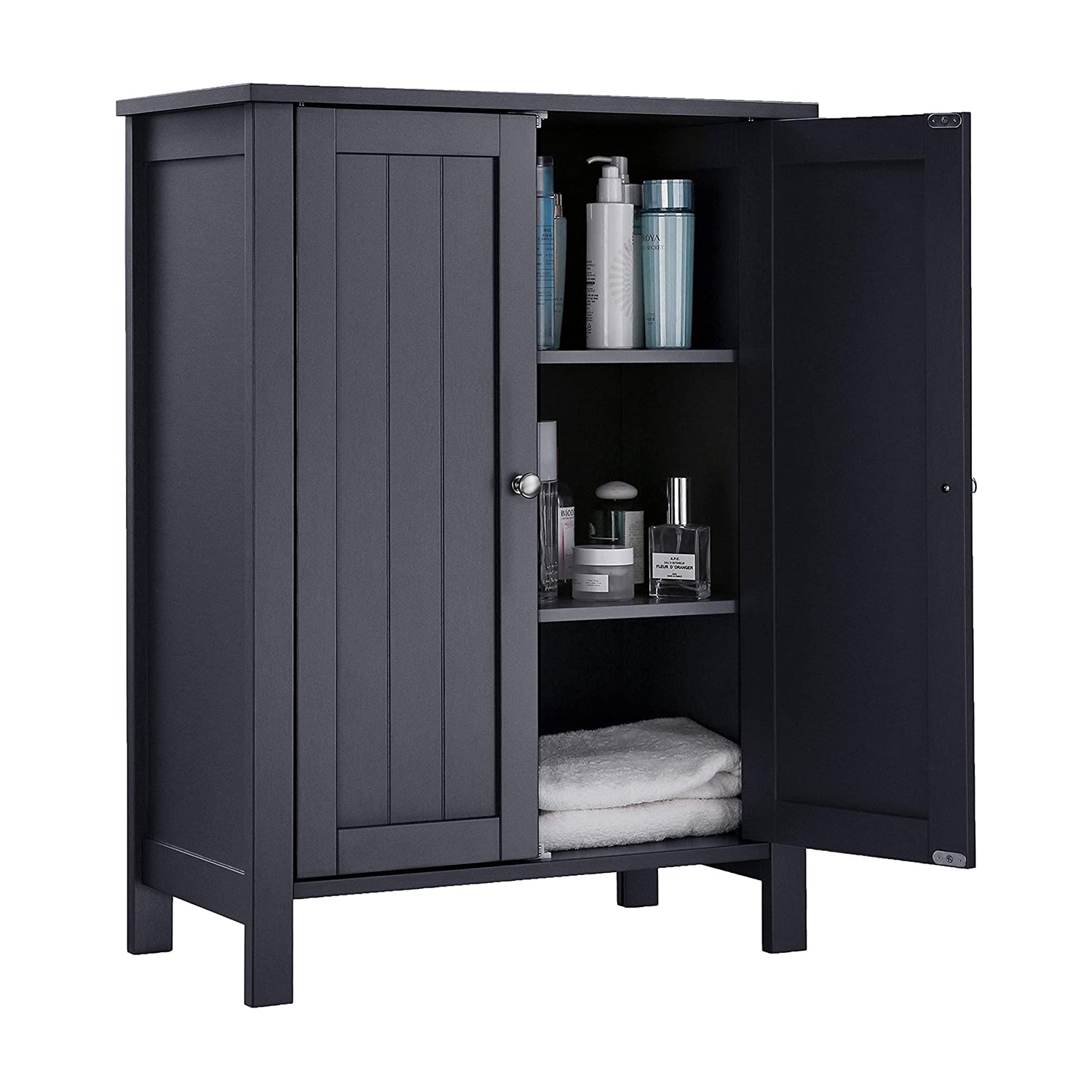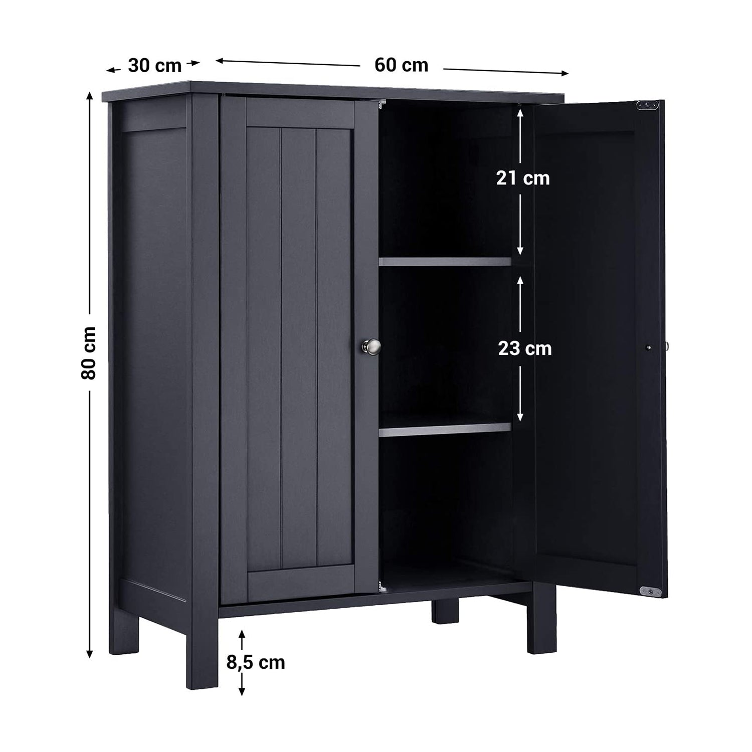 Freistehender Badezimmerschrank mit 2 Türen – Inklusive 2 verstellbaren Regalen – 80 cm hoch – Grau