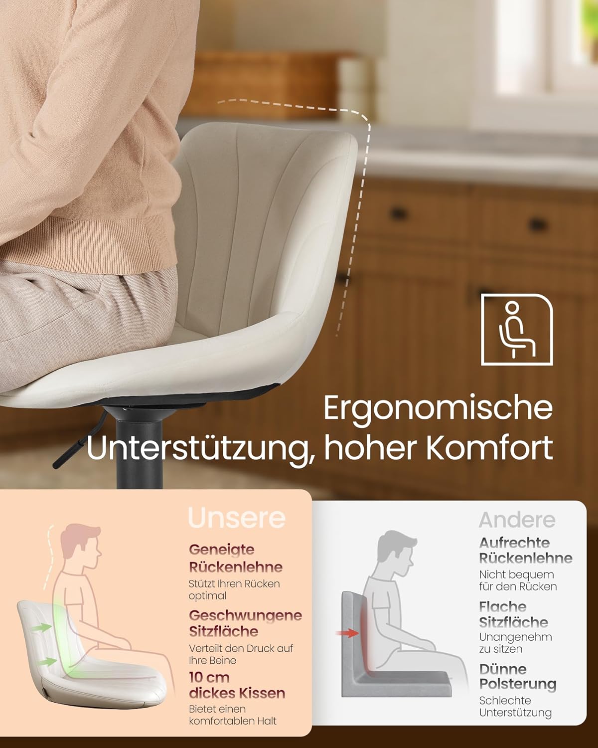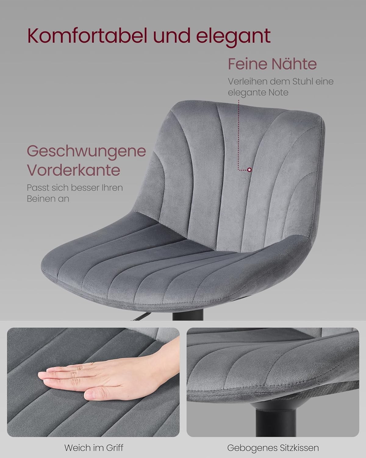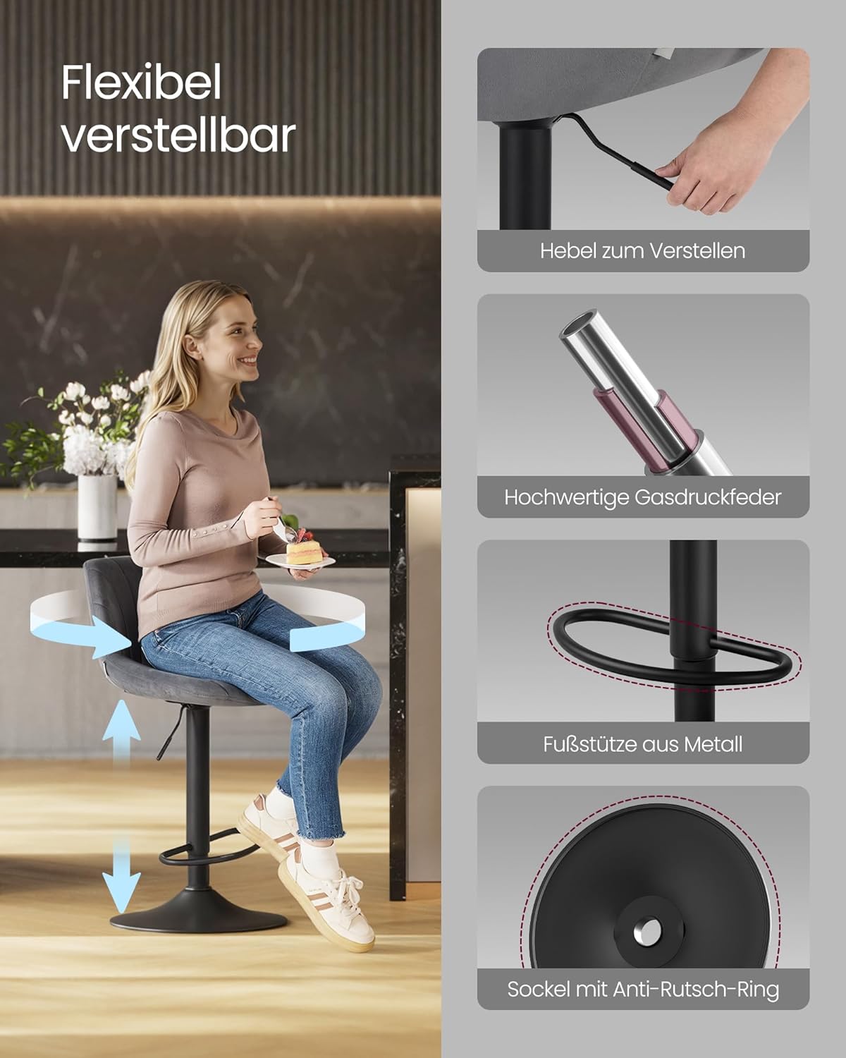 2er-Set Barhocker – Verstellbare Sitzhöhe – Samtpolsterung – Ergonomischer Komfort – Stabile Basis