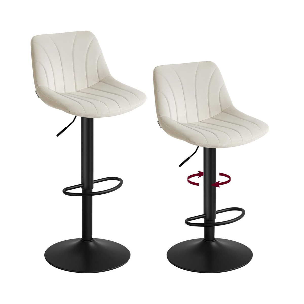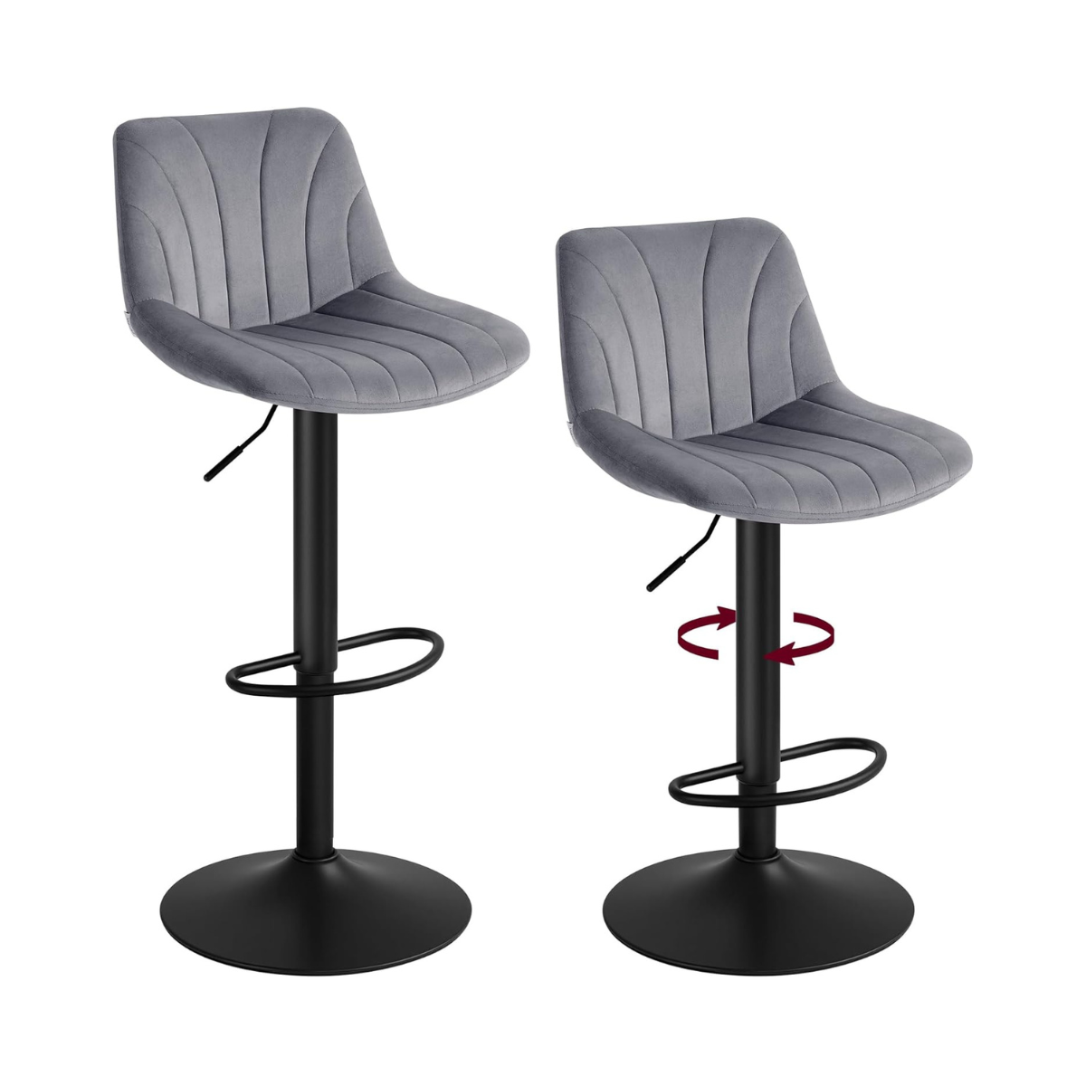 Samt-Barhocker-Set, 2er-Set – Höhenverstellbar & 360° drehbar – Mit Rückenlehne und Fußstütze