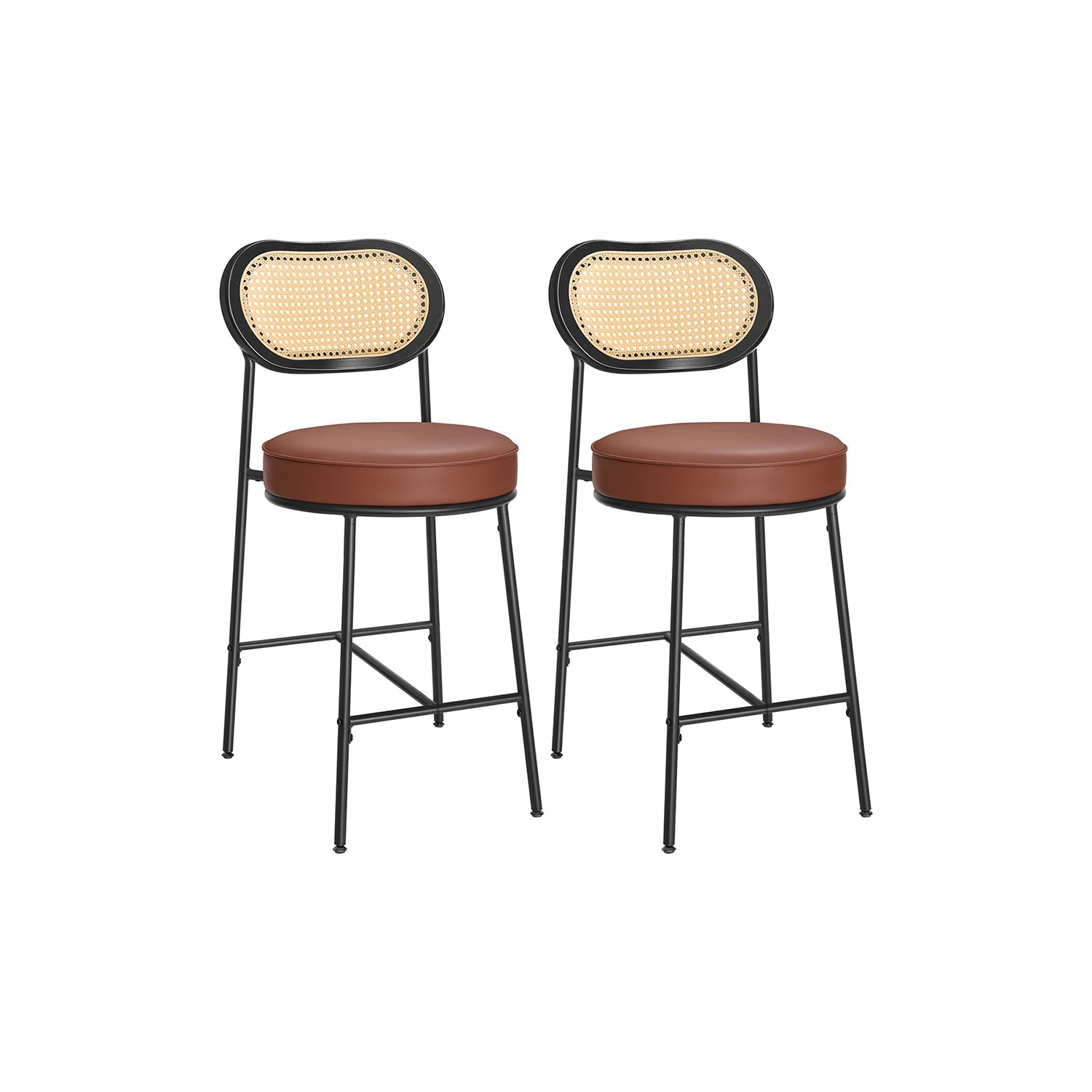 Barhocker 2er Set – BOHO Chic mit Rückenlehne in Rattanoptik – Hoher Sitzkomfort – Für Küche, Bar oder Insel