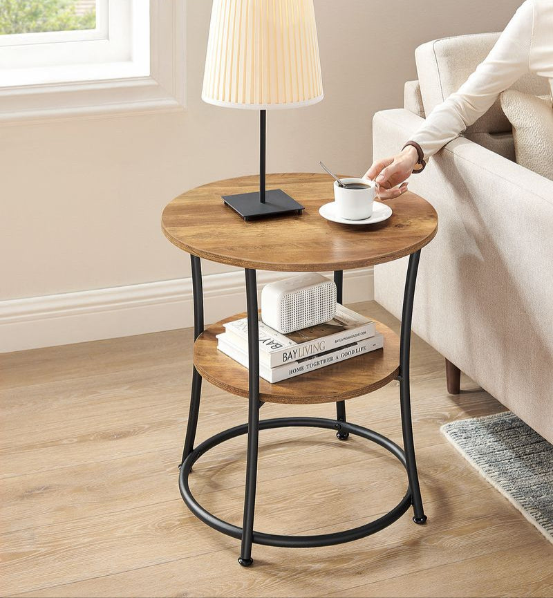 Runder Beistelltisch Walnussbraun-Schwarz – 2 Ebenen – Verstellbare Beine – 55 cm Durchmesser