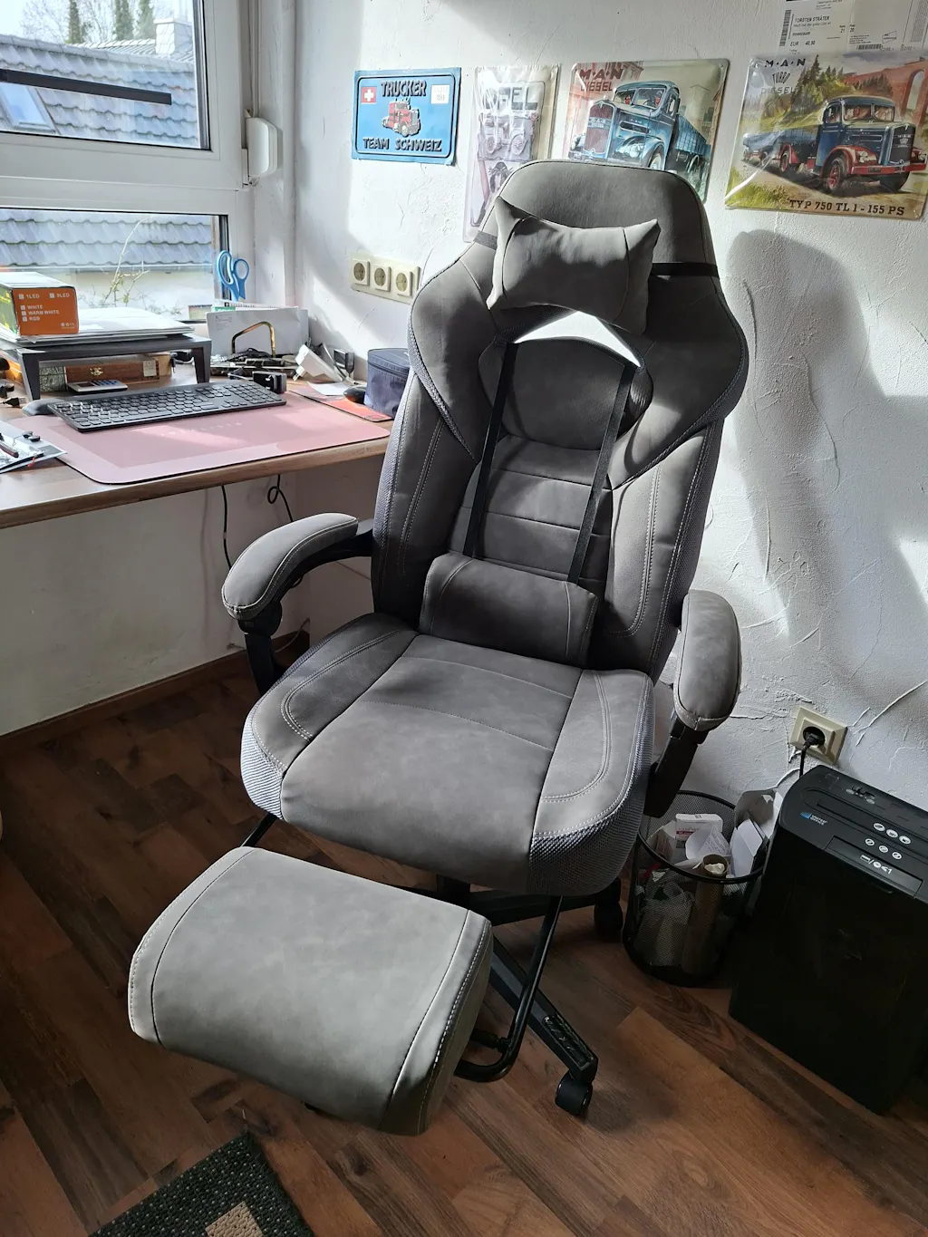 Gaming-Stuhl mit Fußstütze – ergonomisch – neigbar – extra dicke Sitzfläche – höhenverstellbar
