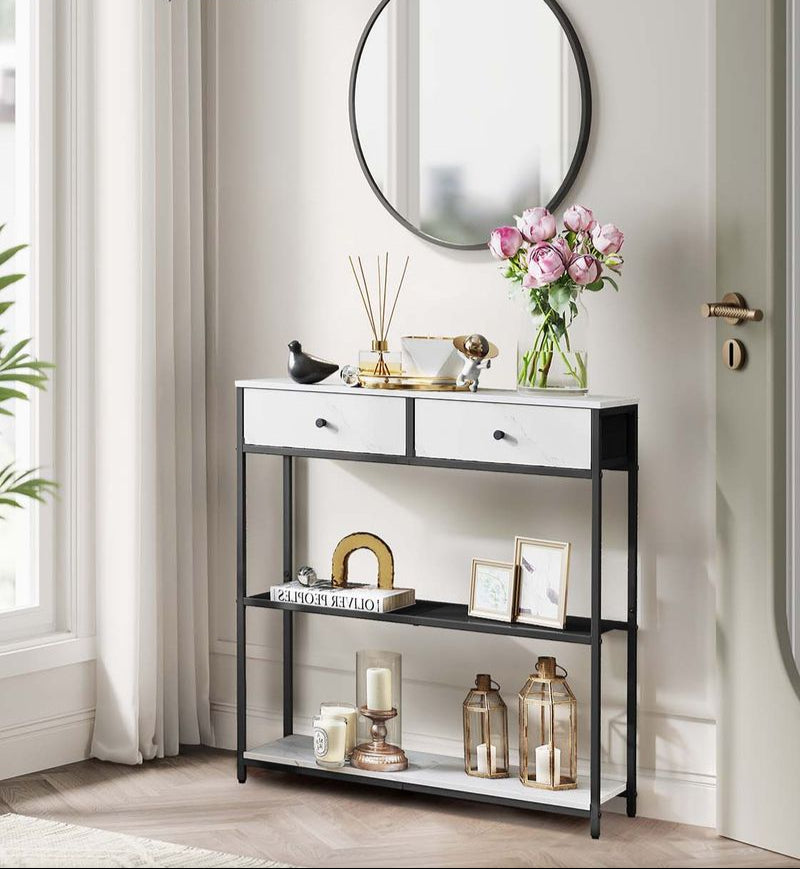 Ob im Flur, Schlafzimmer, Büro oder hinter dem Sofa – dieser schmale Tisch passt dank seiner kompakten Größe und funktionalen Form in fast jeden Raum.