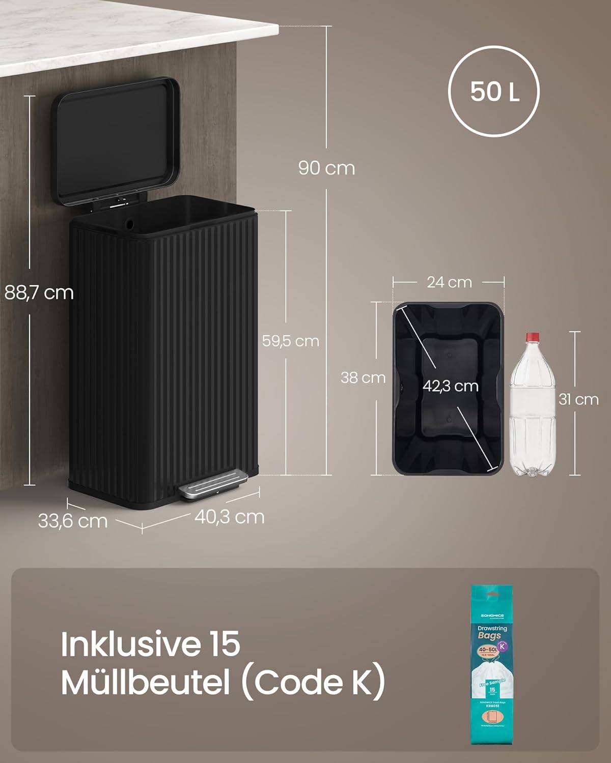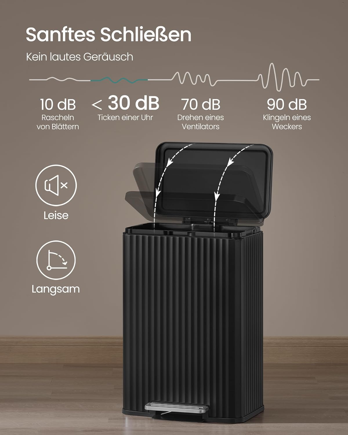 Küchenmülleimer – 50 Liter – Treteimer mit Soft-Close-Deckel – Inneneimer aus Stahl – Inklusive 15 Müllbeuteln