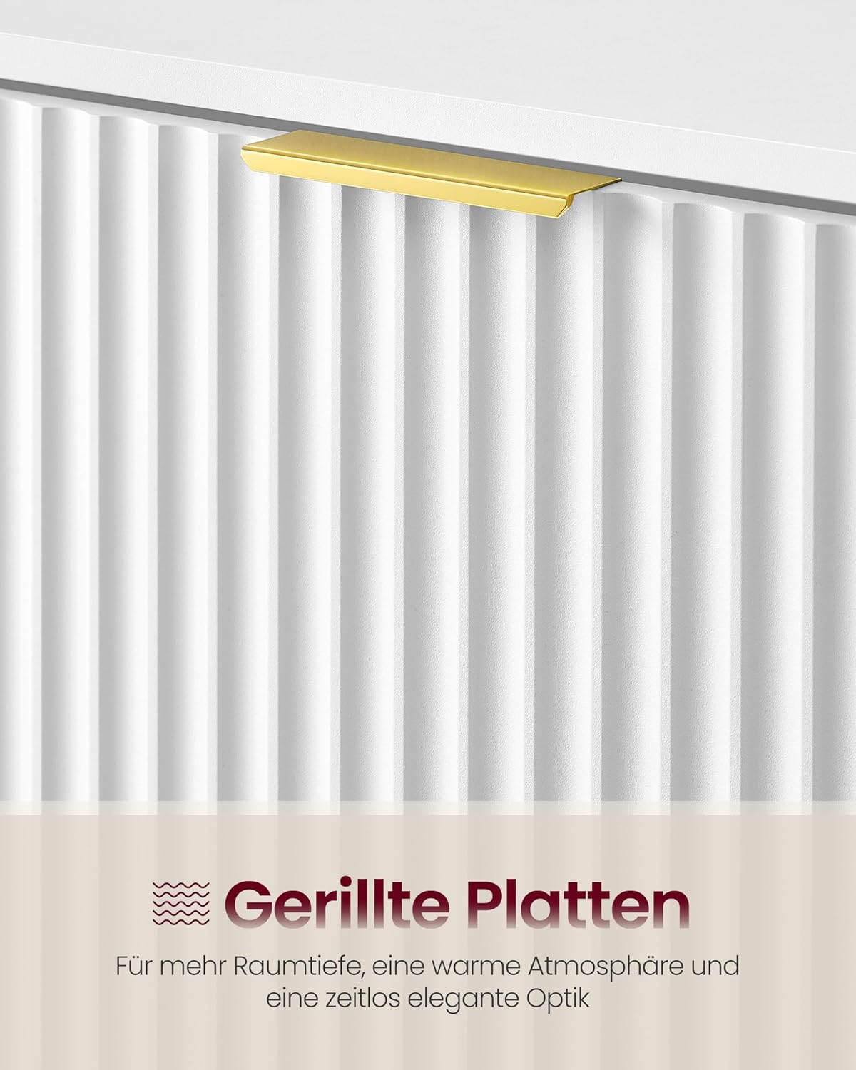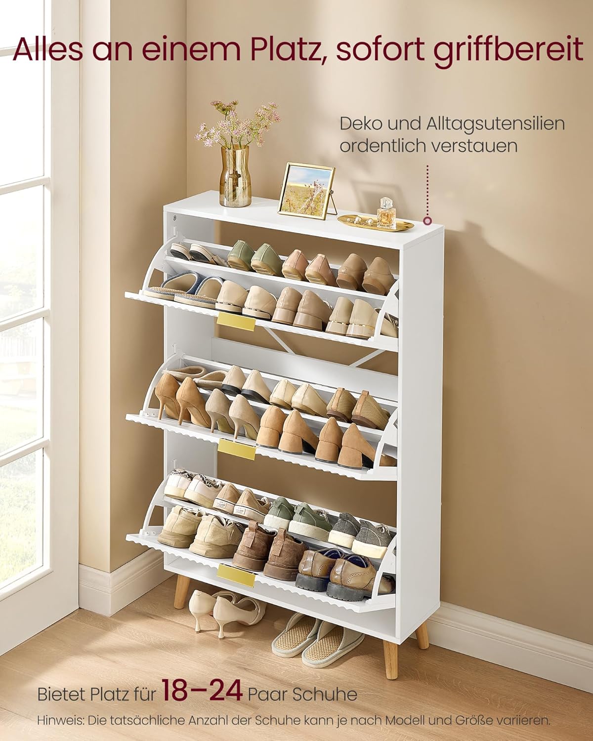 Schuhschrank mit 3 Türen – Mid-Century Modern – Geriffelte Türen – Für 18–24 Paar Schuhe – Wolkenweiß – 80 x 24 x 123 cm