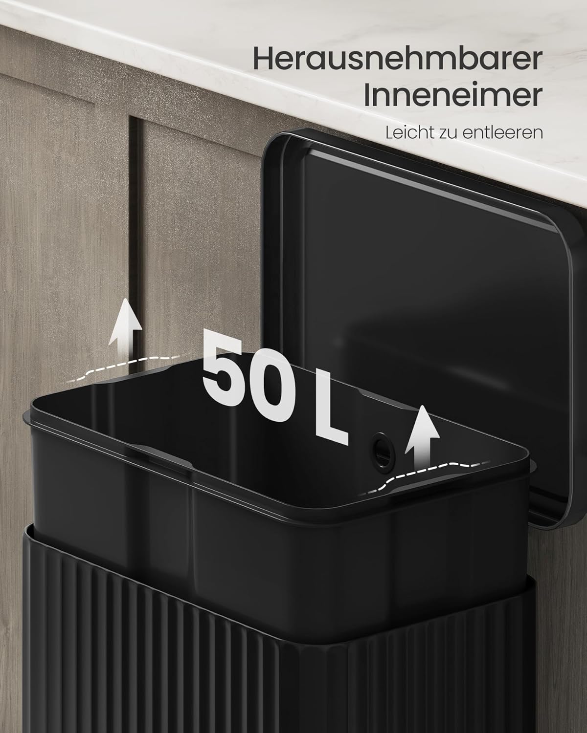 Küchenmülleimer – 50 Liter – Treteimer mit Soft-Close-Deckel – Inneneimer aus Stahl – Inklusive 15 Müllbeuteln