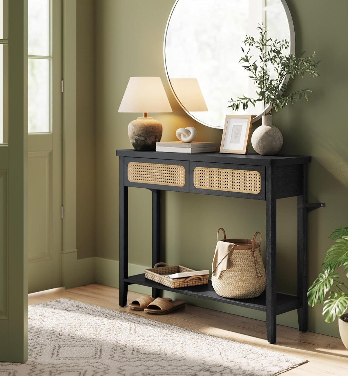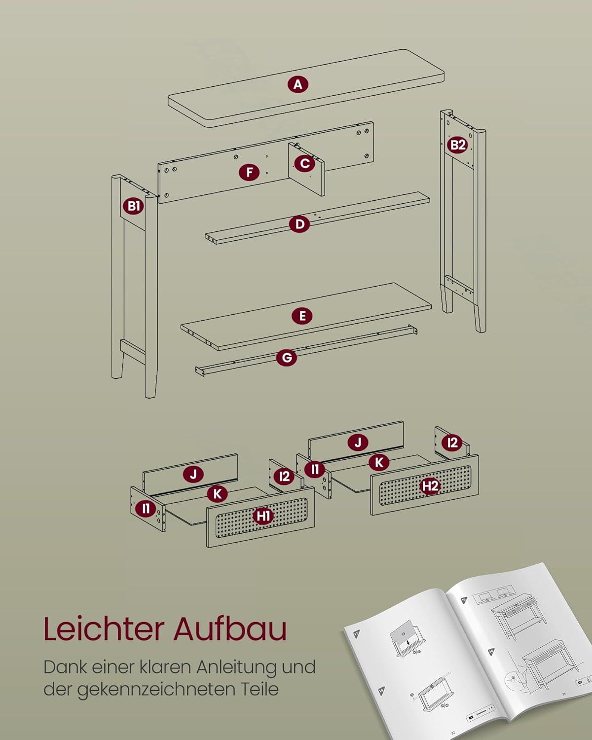 Konsolentisch mit Schubladen und Rattanfront – BOHO Wandtisch – Modernes Design – 100 cm breit