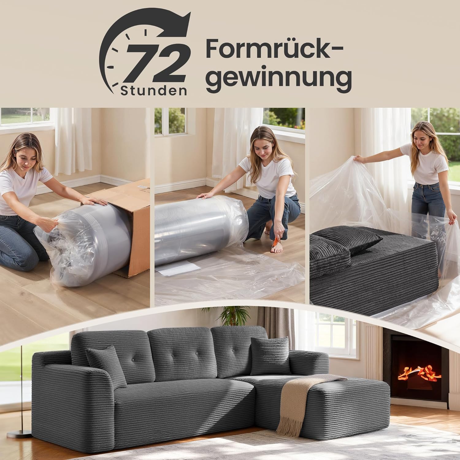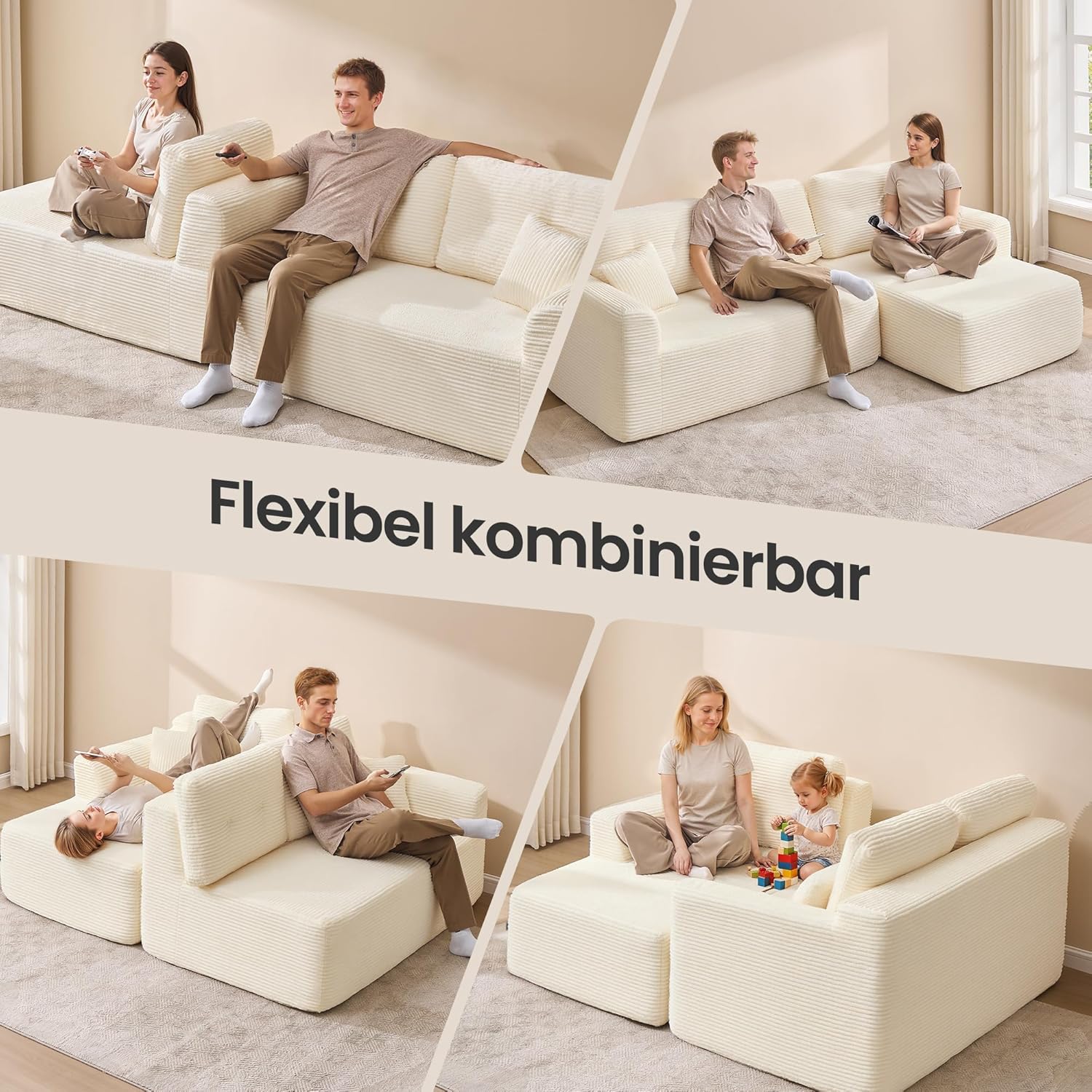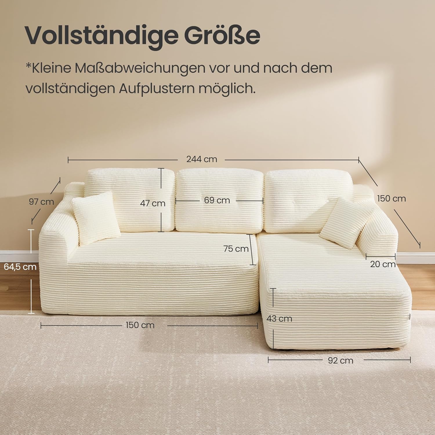 Ecksofa – Modulares Schlafsofa – 244 cm breit – mit Chaiselongue rechts