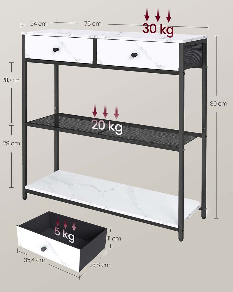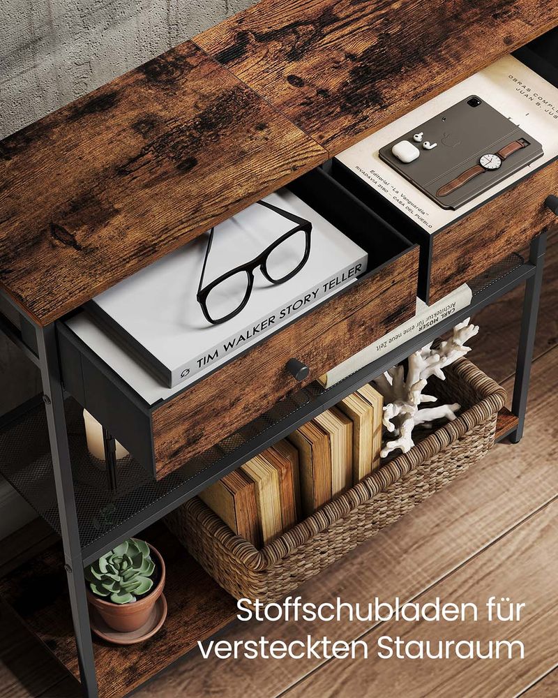 Industrielles Sideboard mit Schubladen – Schmaler Konsolentisch – Schuhregal und Staufächer