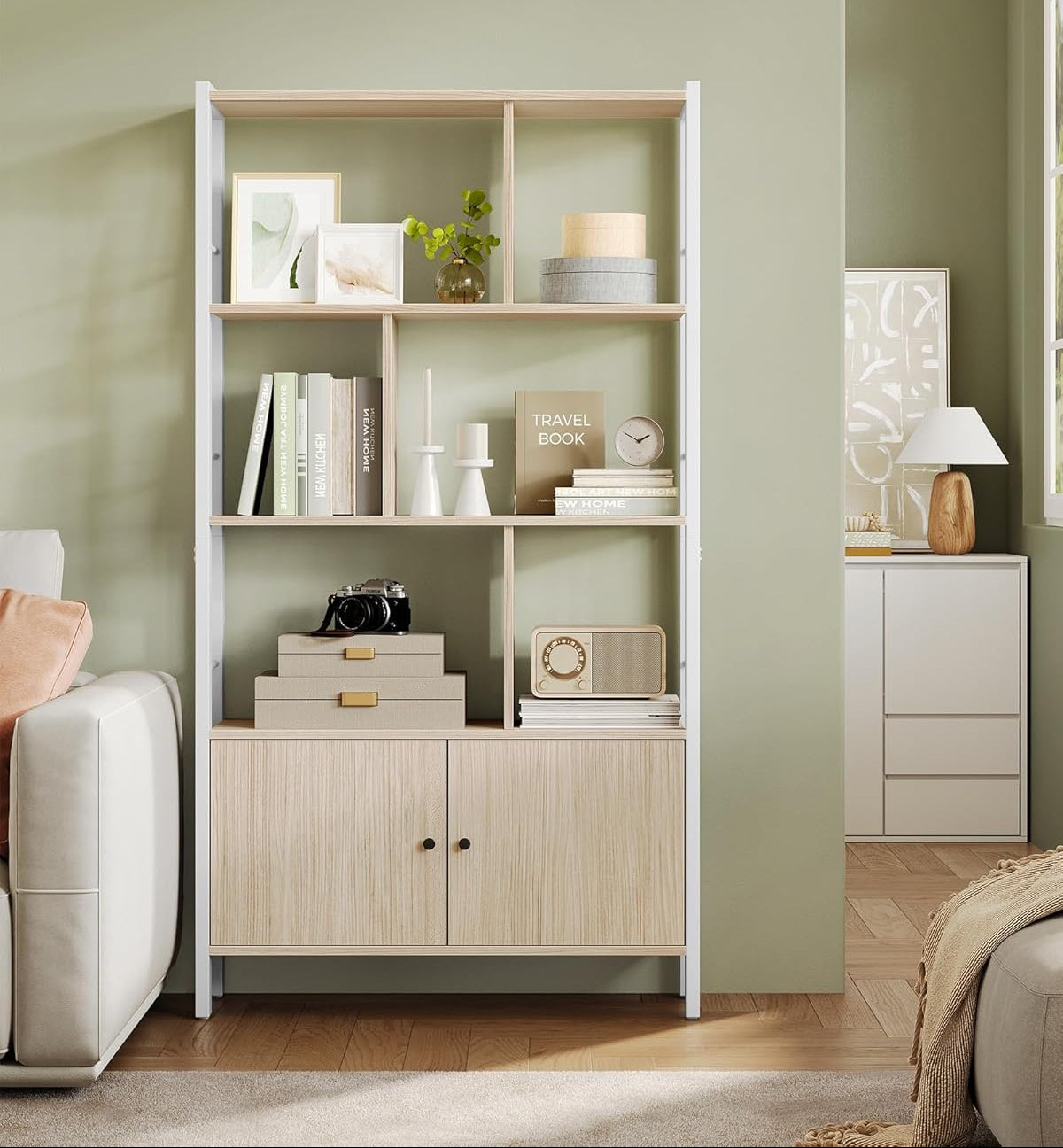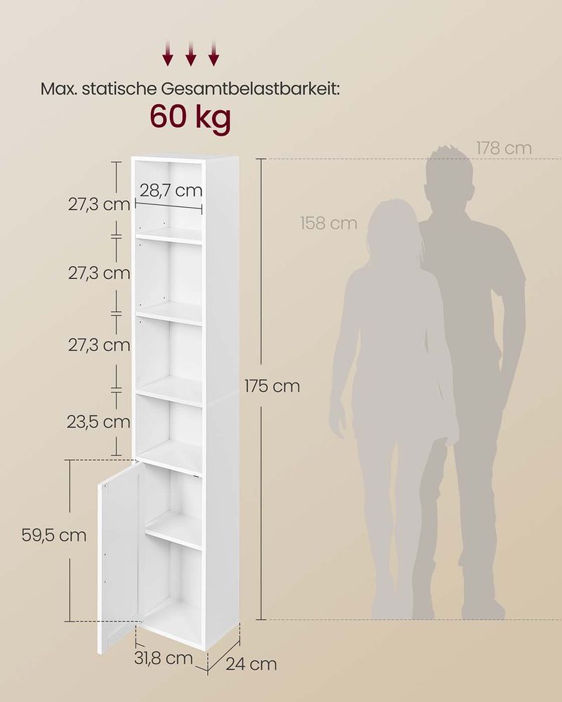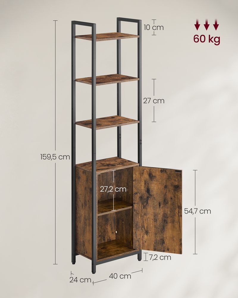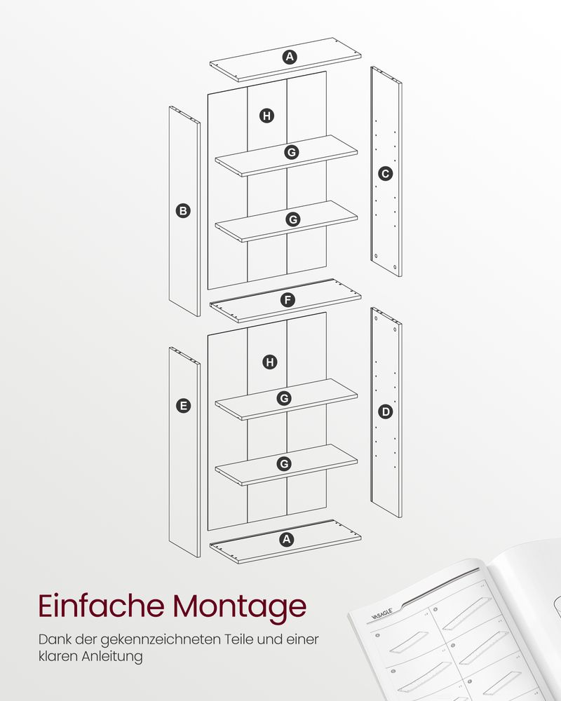 Bücherregal mit Schrank und offenen Fächern – Schmaler Aufbewahrungsschrank – Verstellbare Einlegeböden – MDF & Spanplatte