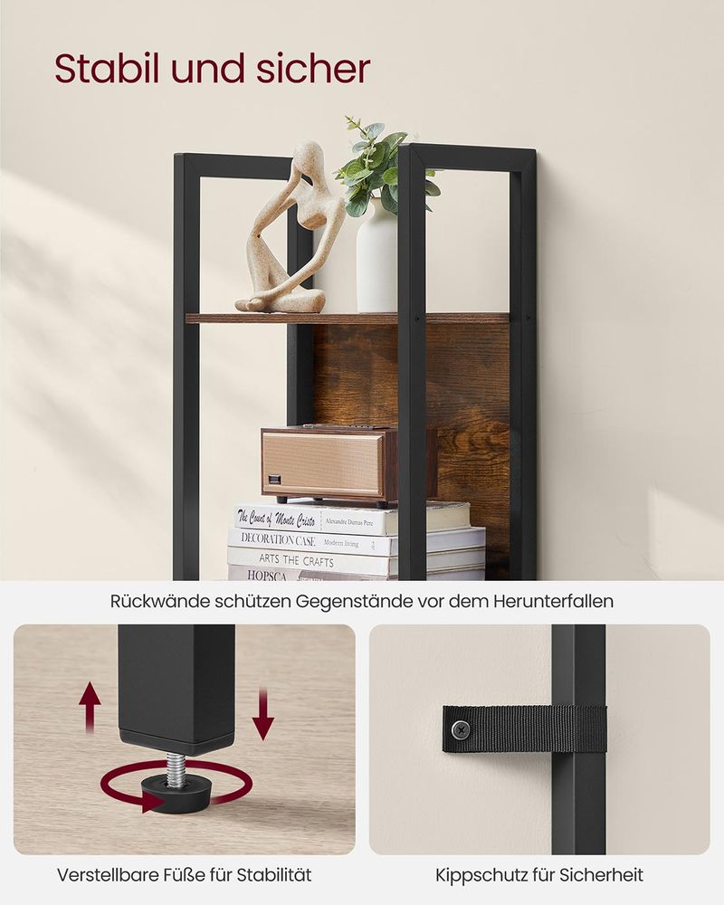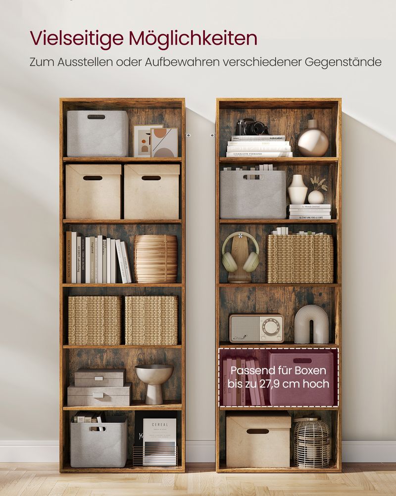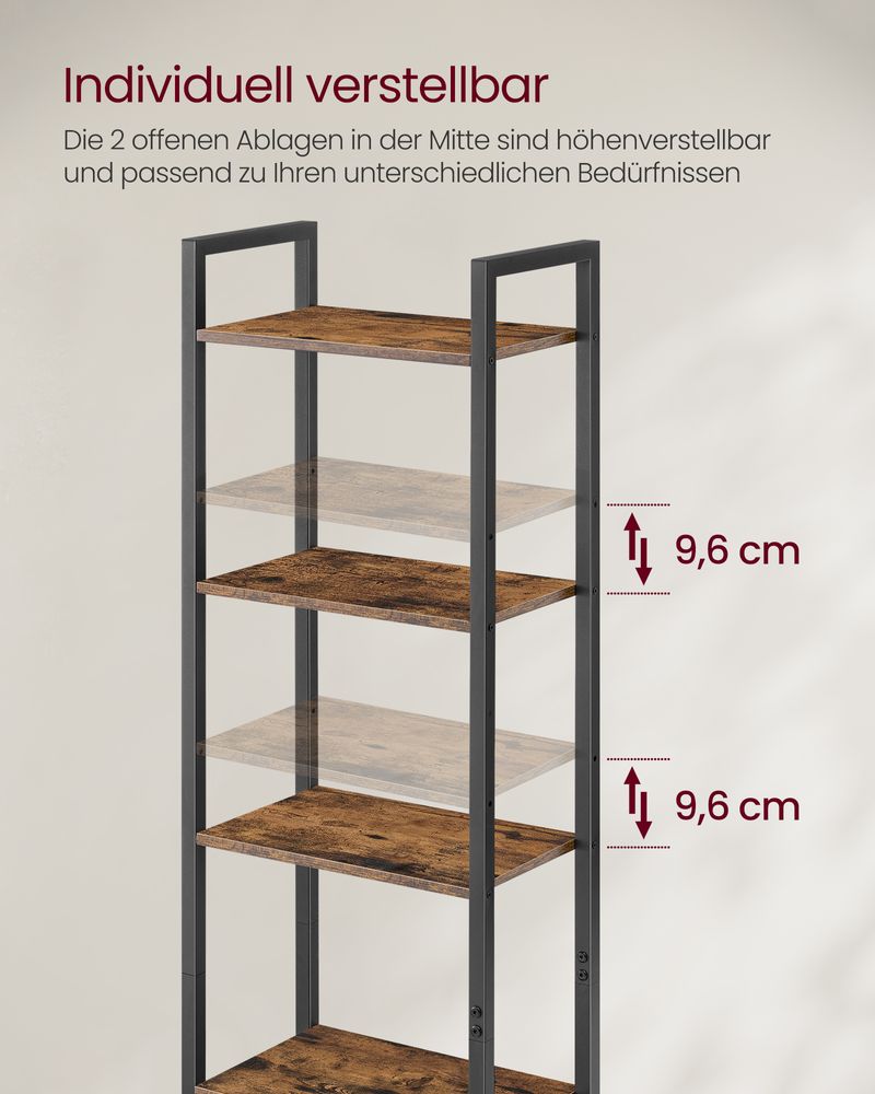 Bücherregal mit 6 offenen Regalen – Industriedesign – 186 cm hoch – Braun/Schwarz