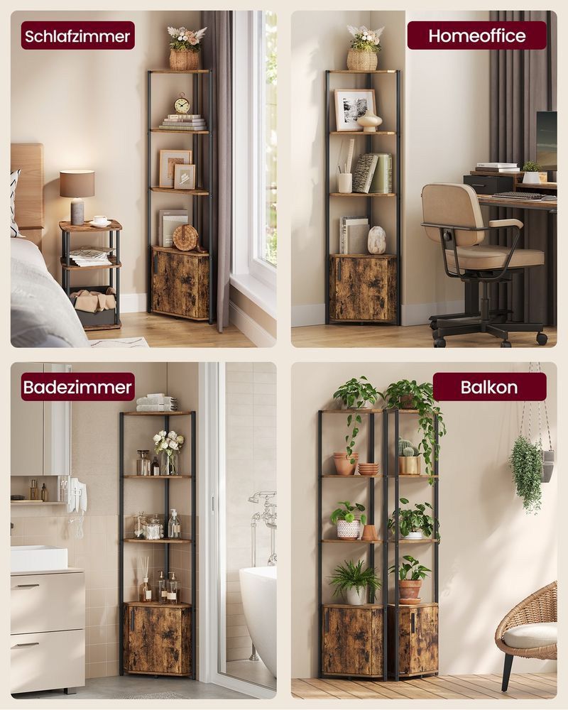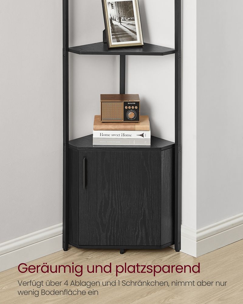 Industrielles Eckregal mit Schrank – 5 Ebenen – Platzsparendes Aufbewahrungsregal – Metall und Holz