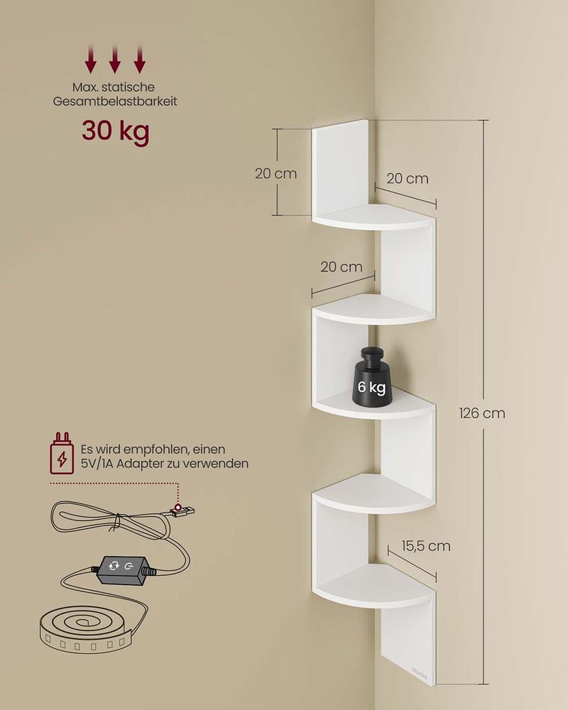 Eckregal mit LED-Beleuchtung und Zickzack-Design – 5 Ebenen, Ambientebeleuchtung und platzsparendes Design