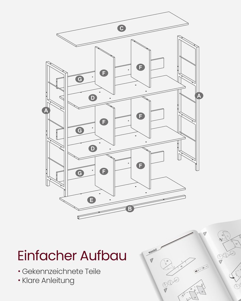 Bücherregal mit 10 offenen Fächern – Vielseitiger Raumteiler für Bücher und Dekoration