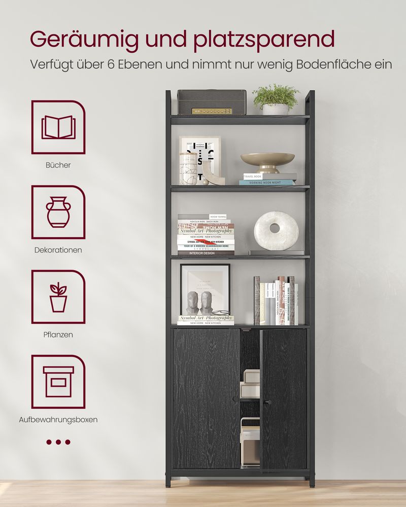 Bücherregal mit Türen und verstellbaren Einlegeböden – Stilvolles Aufbewahrungsmöbel im Industriestil für Wohnzimmer oder Büro