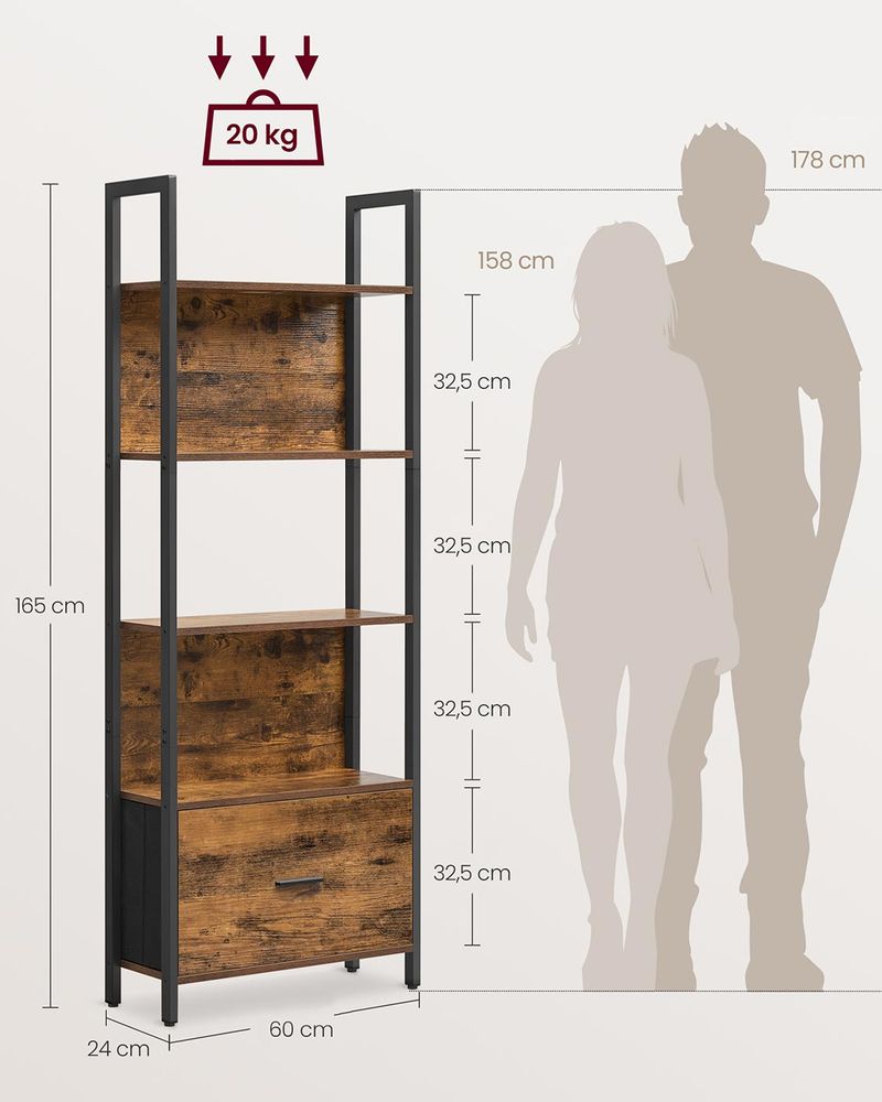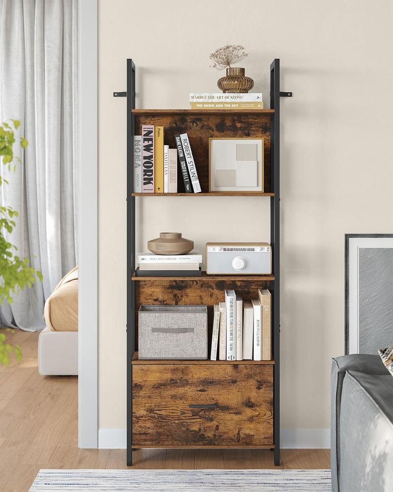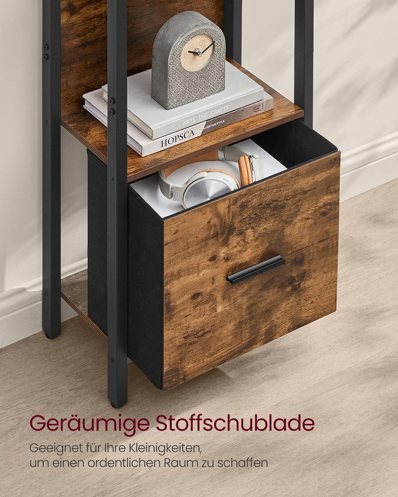 Bücherregal mit Schublade – Industrielles Leiterregal – Lagerschrank mit 5 Ebenen – 165 cm hoch