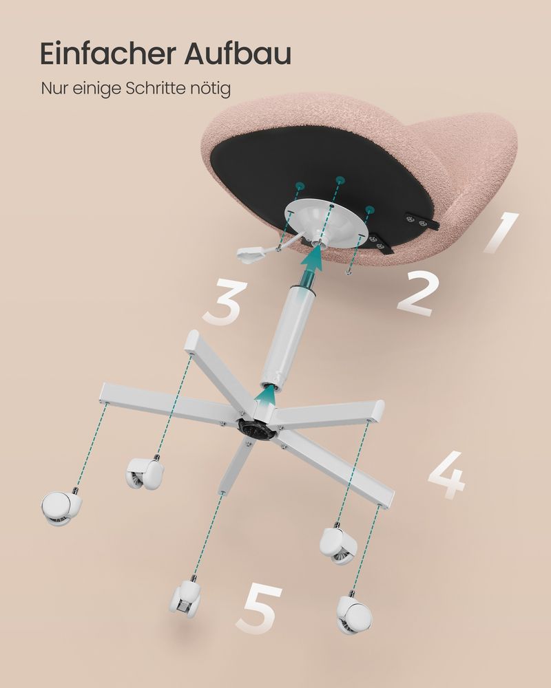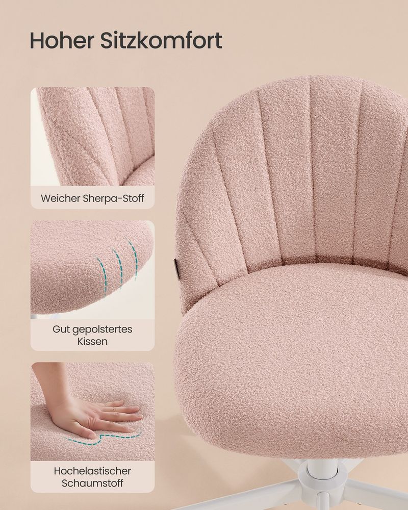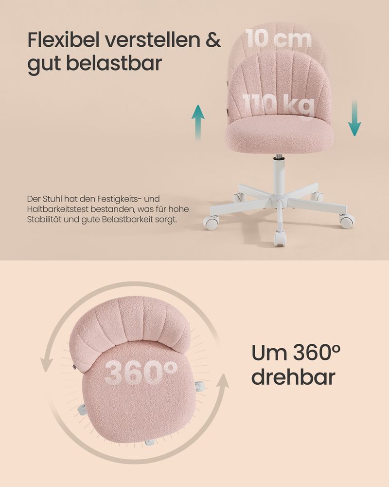 Drehstuhl – Kompaktes Design – Fleecebezug – Höhenverstellbar – 360°-Rollen – Ergonomische Rückenlehne
