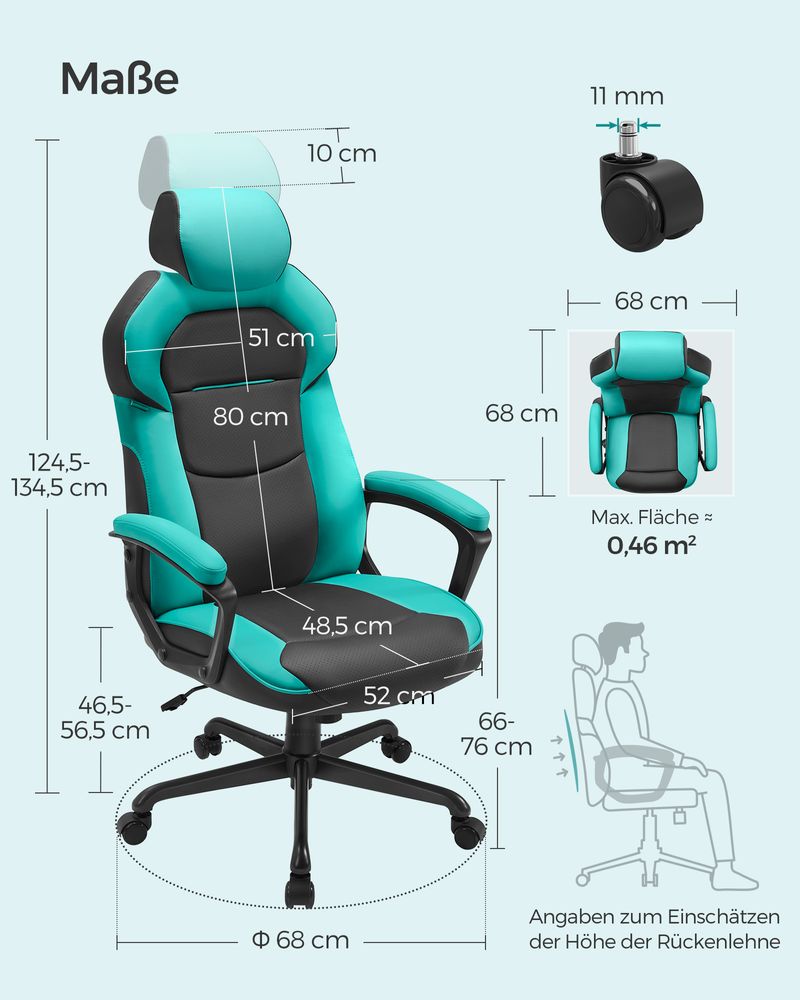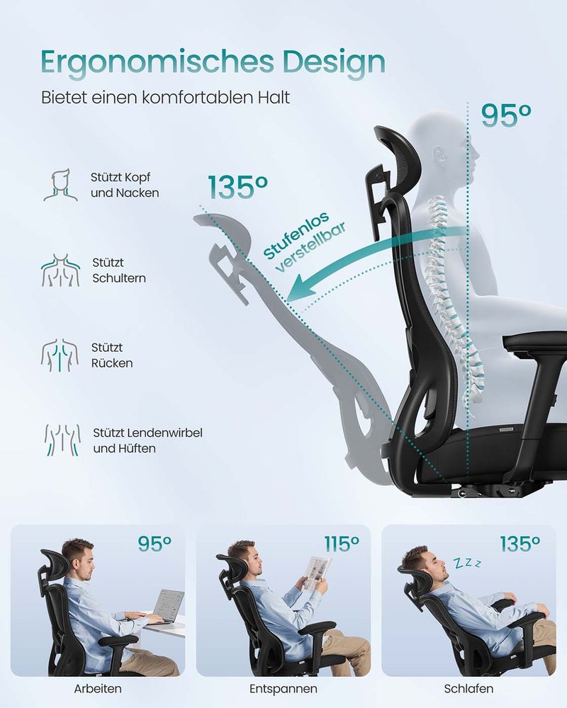 95° bis 110° Neigungsfunktion können Sie sich für eine kurze Pause oder Entspannung bequem zurücklehnen.