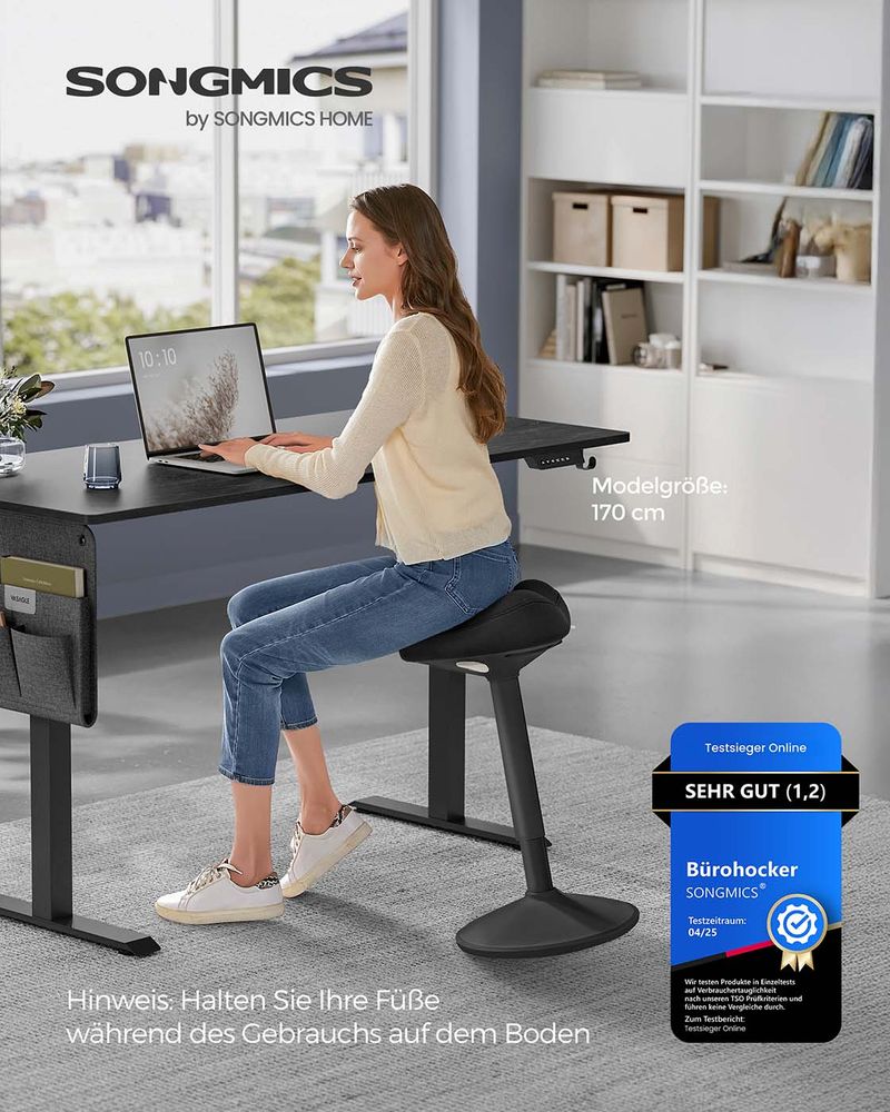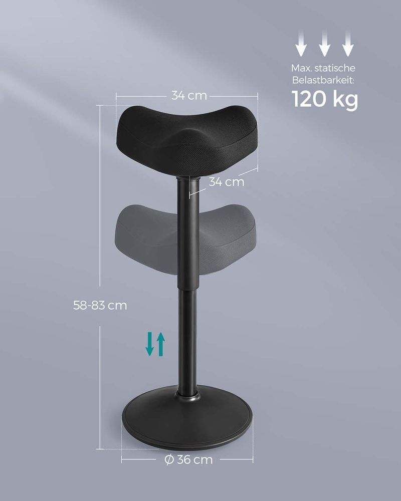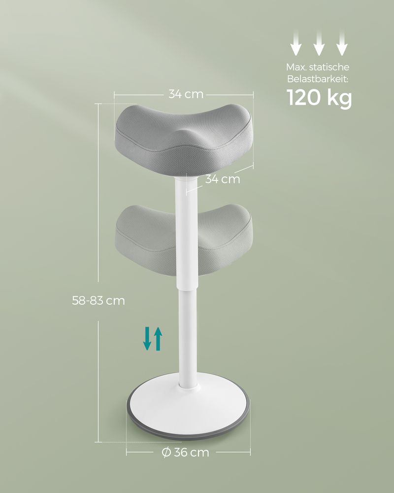 Dieser moderne Stehhocker ist um 360° neigbar und ermöglicht Ihnen so Bewegungsfreiheit in alle Richtungen. Dies stimuliert die Rücken- und Nackenmuskulatur, fördert die Durchblutung und trägt zu einer gesünderen, dynamischen Arbeitshaltung bei.