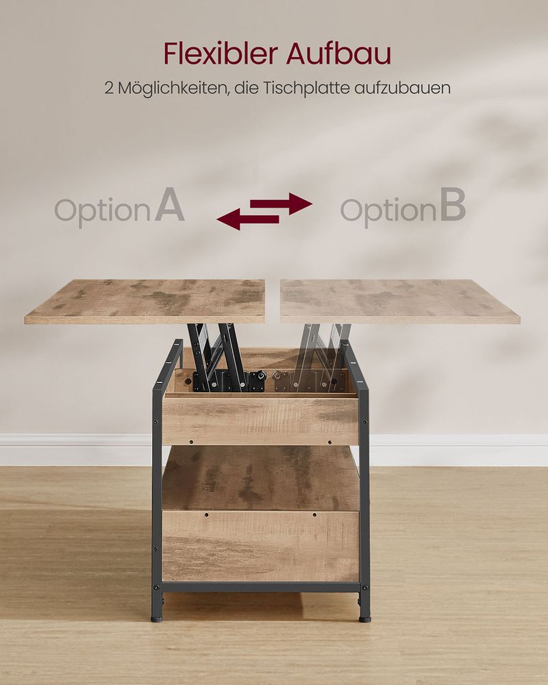 Couchtisch mit Stauraum - Höhenverstellbare Platte - Wohnzimmertisch