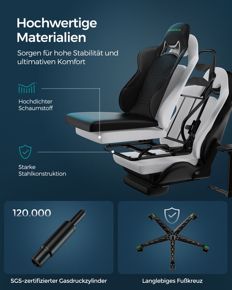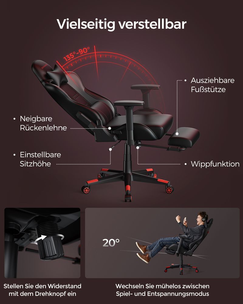 Gaming-Stuhl mit Fußstütze – ergonomisch – neigbar – extra dicke Sitzfläche – höhenverstellbar