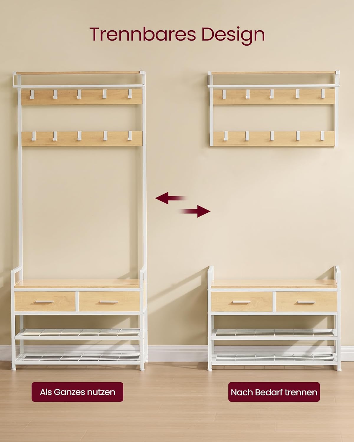 Garderobe mit Schuhregal und Sitzbank - 7 Doppelhaken und verstellbare Ablageflächen