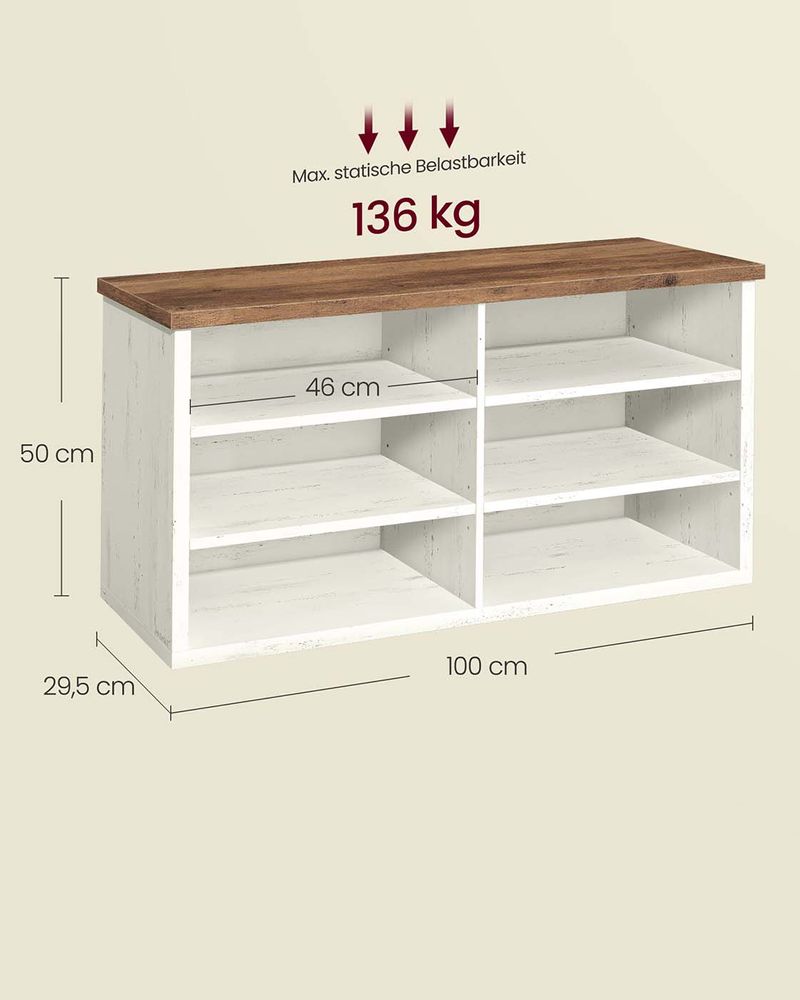 Schuhbank mit 6 offenen Fächern – Landhausstil – Tragkraft bis zu 136 kg