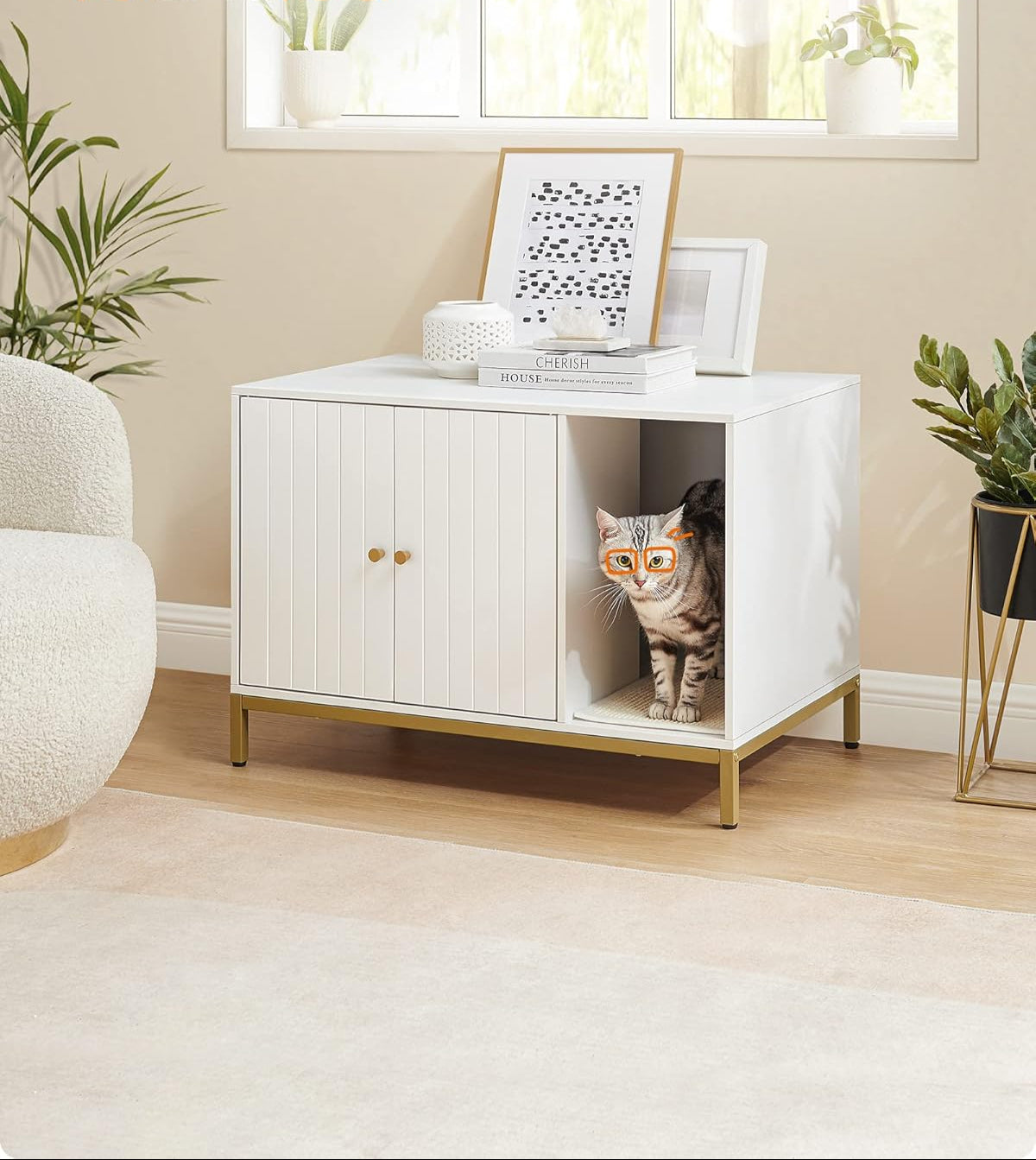 Moderner Katzentoilettenschrank – Stilvoller Möbelschrank – Versteckte Katzentoilette mit Kratzmatte
