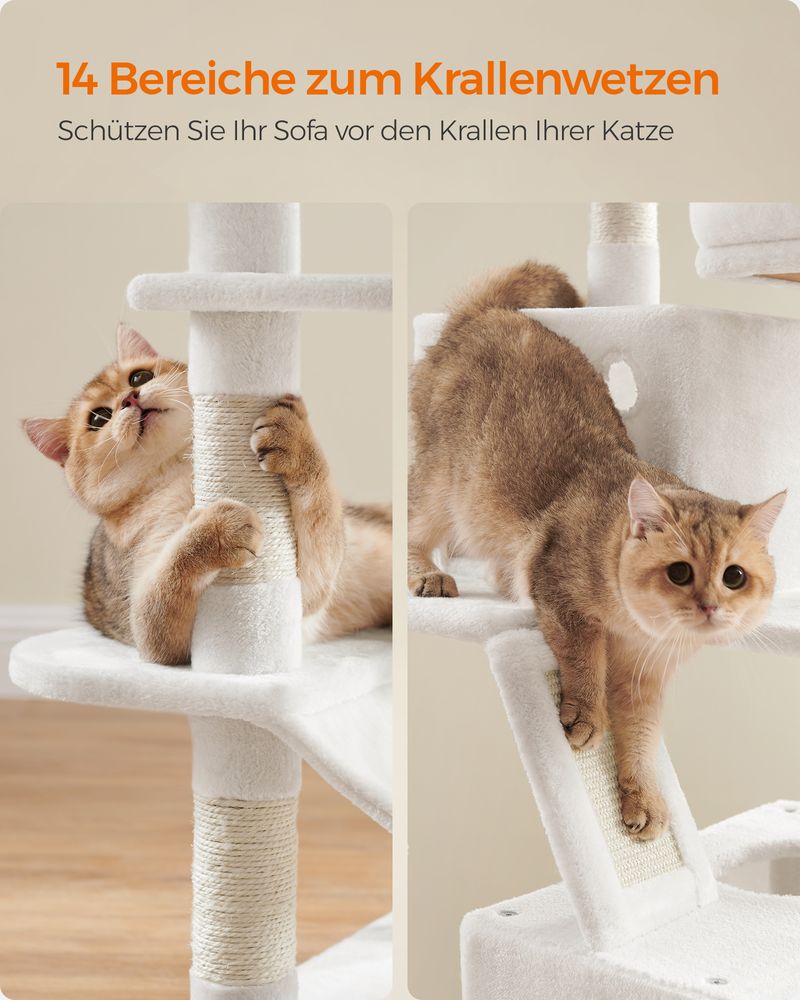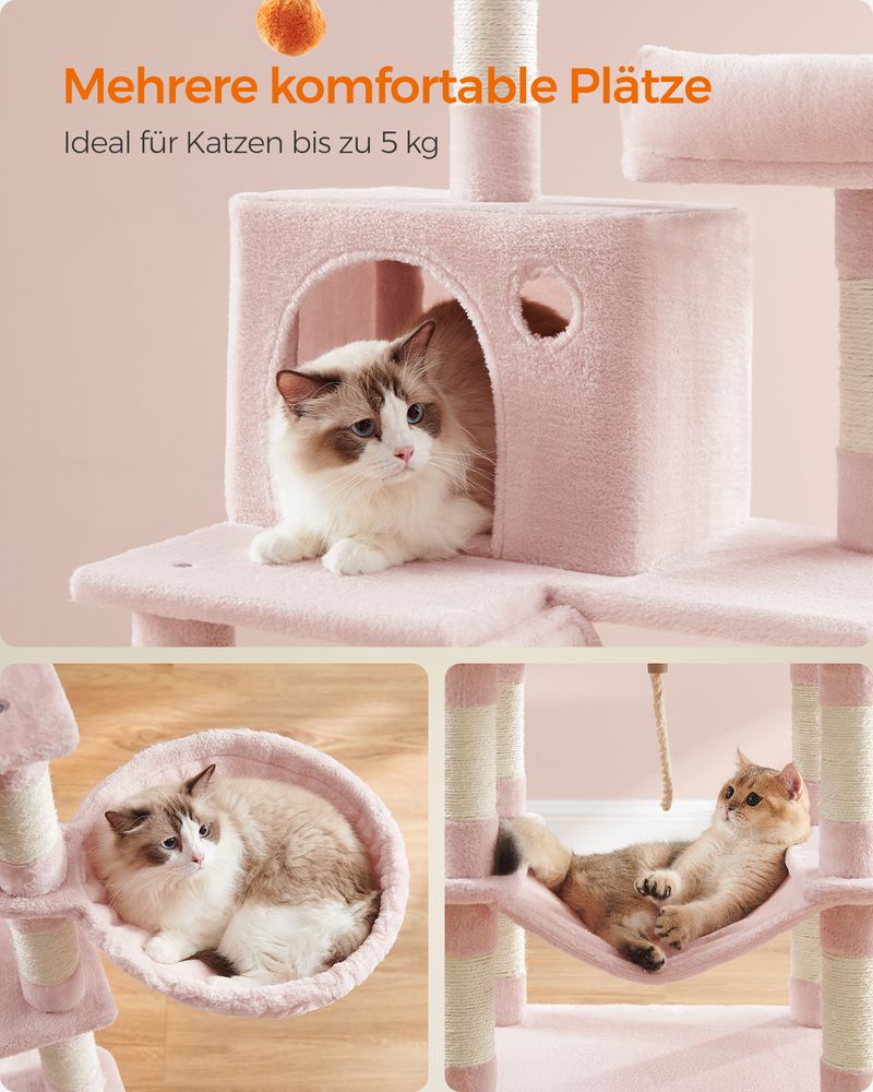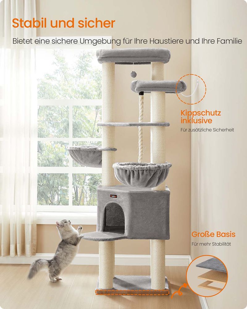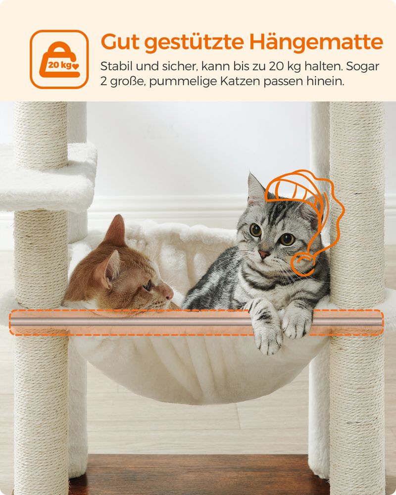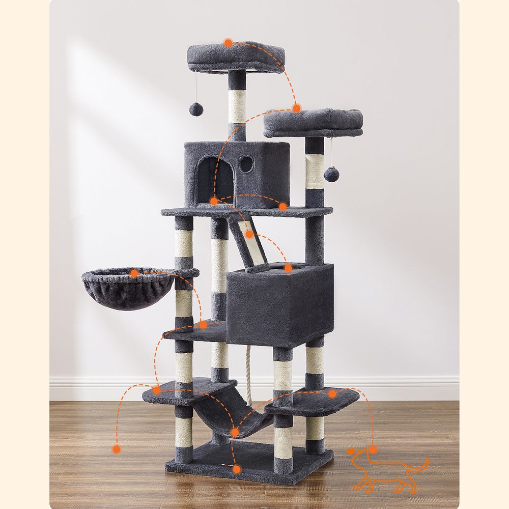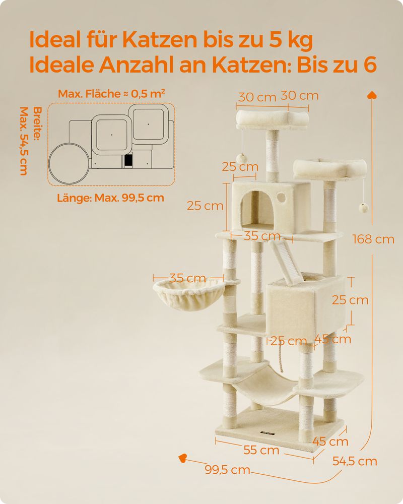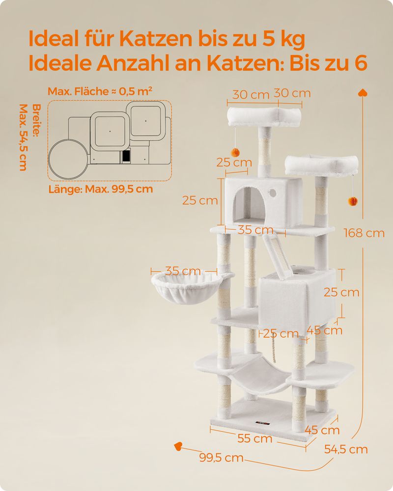 Luxuriöser Katzenbaum 168 cm - Mehrstöckiger Katzenbaum mit Kratzstämmen, Hängematte und Katzenhaus für große Katzen