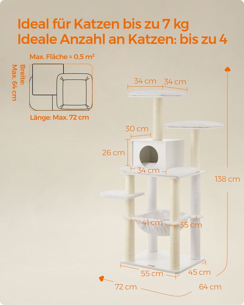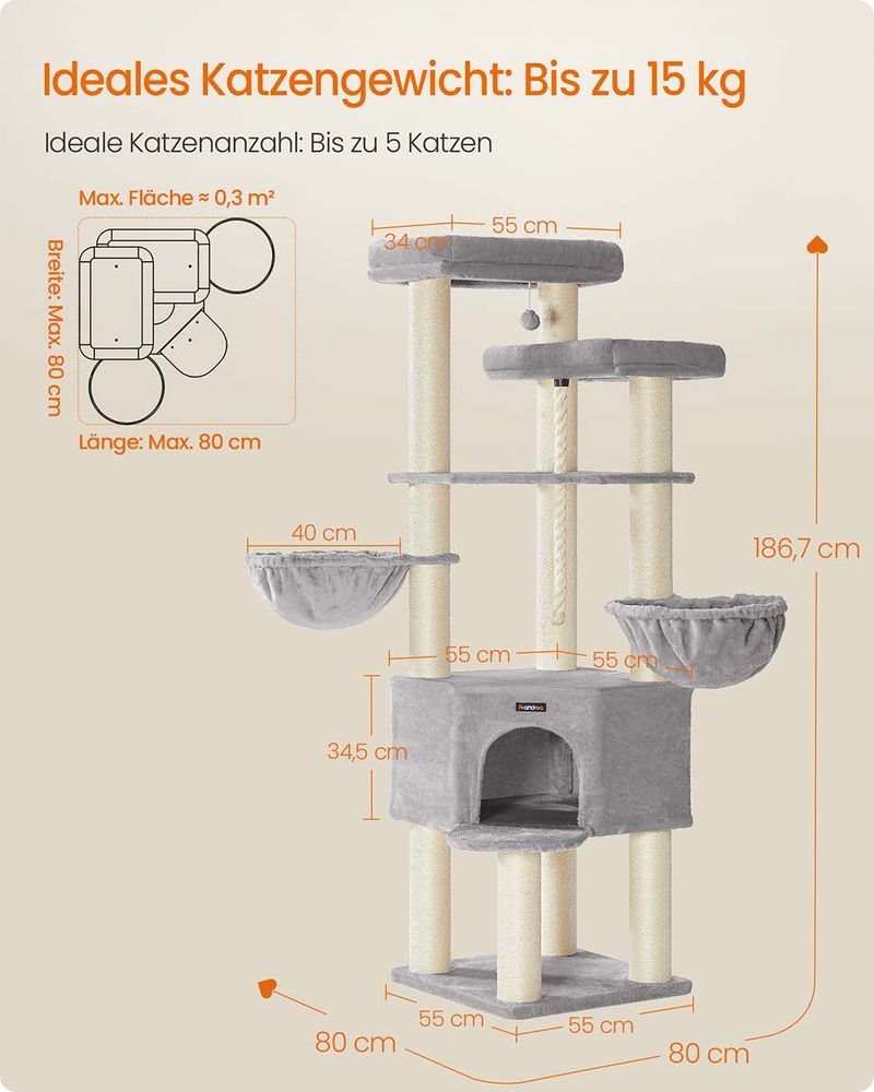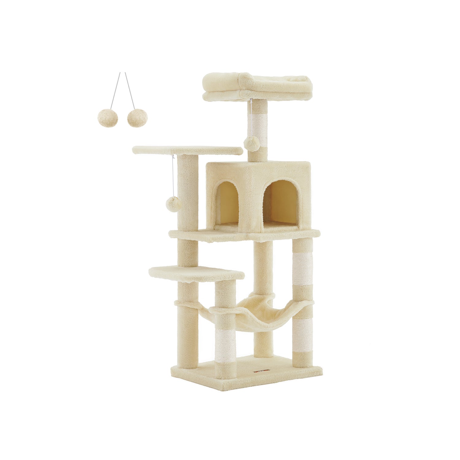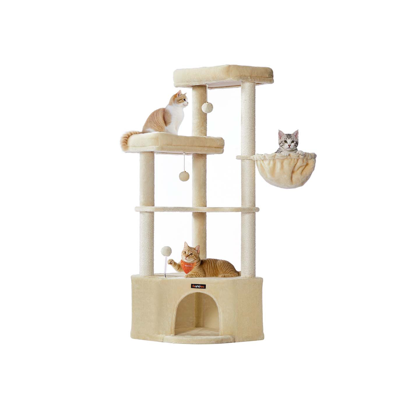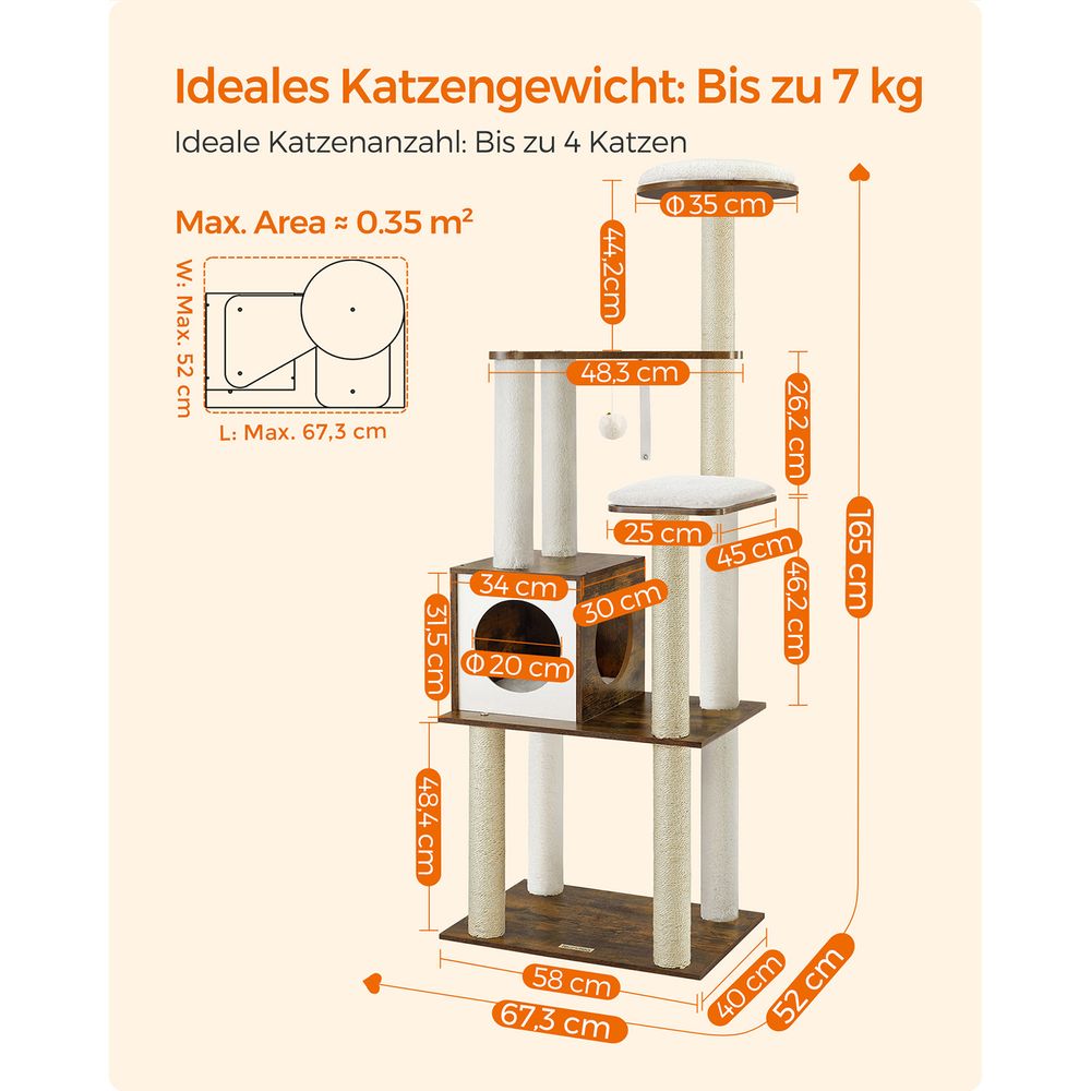 Luxuriöser Katzenbaum 168 cm - Mehrstöckiger Katzenbaum mit Kratzstämmen, Hängematte und Katzenhaus für große Katzen