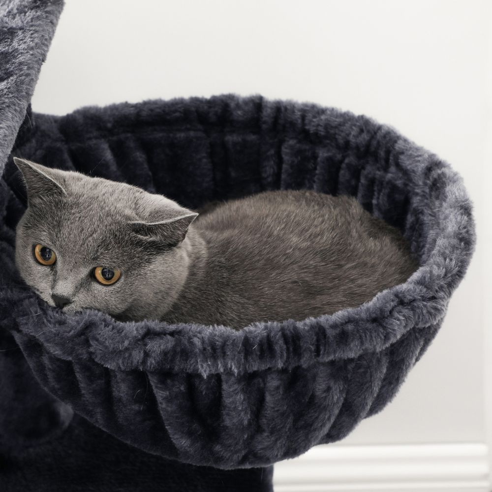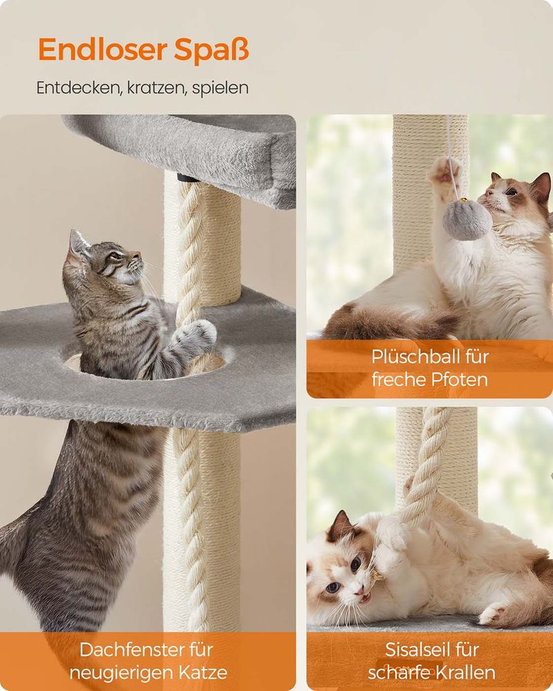 Katzenkratzbaum – mit Korb, Höhle und Spielbällen – 140 cm hoch