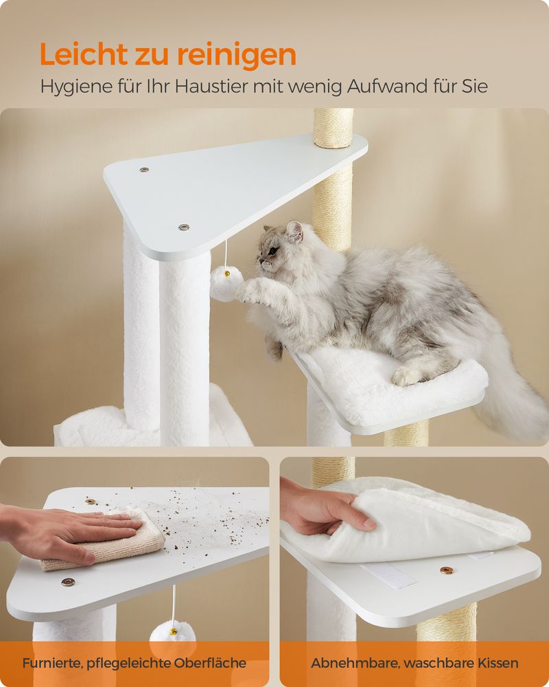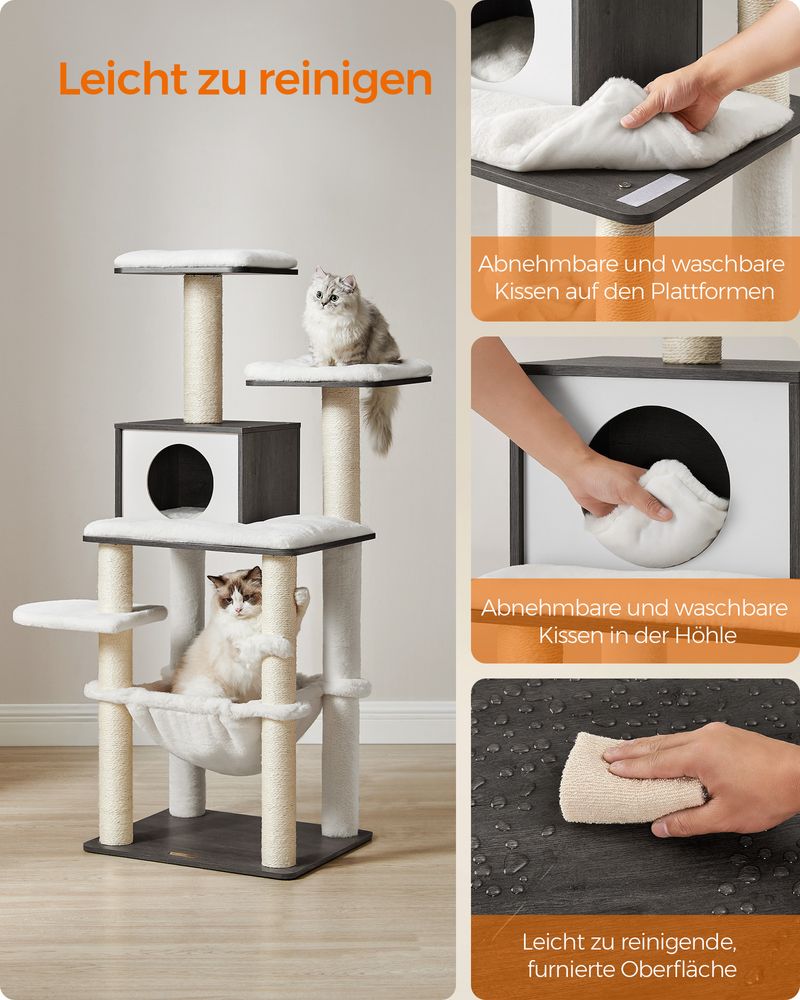 Moderner Katzenbaum 165 cm – Stilvolles Katzenmöbel mit weichen Kissen, Kratzstämmen und abnehmbaren Bezügen