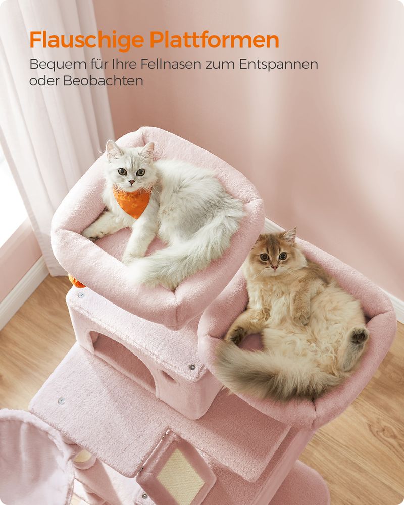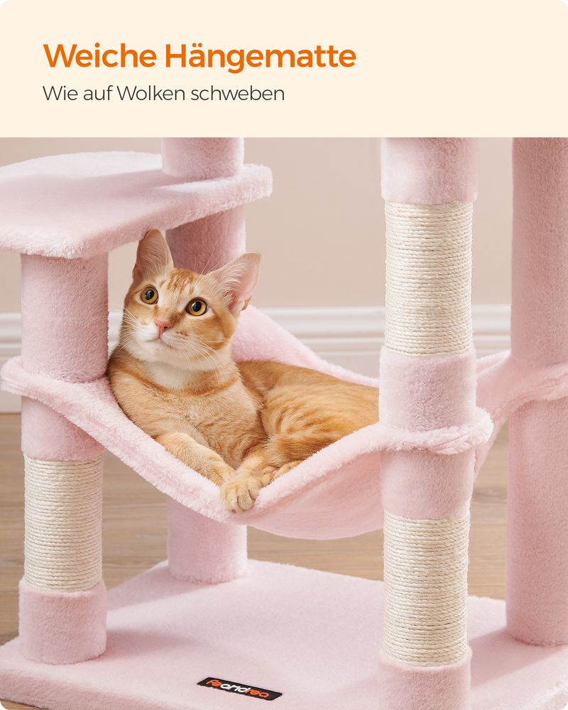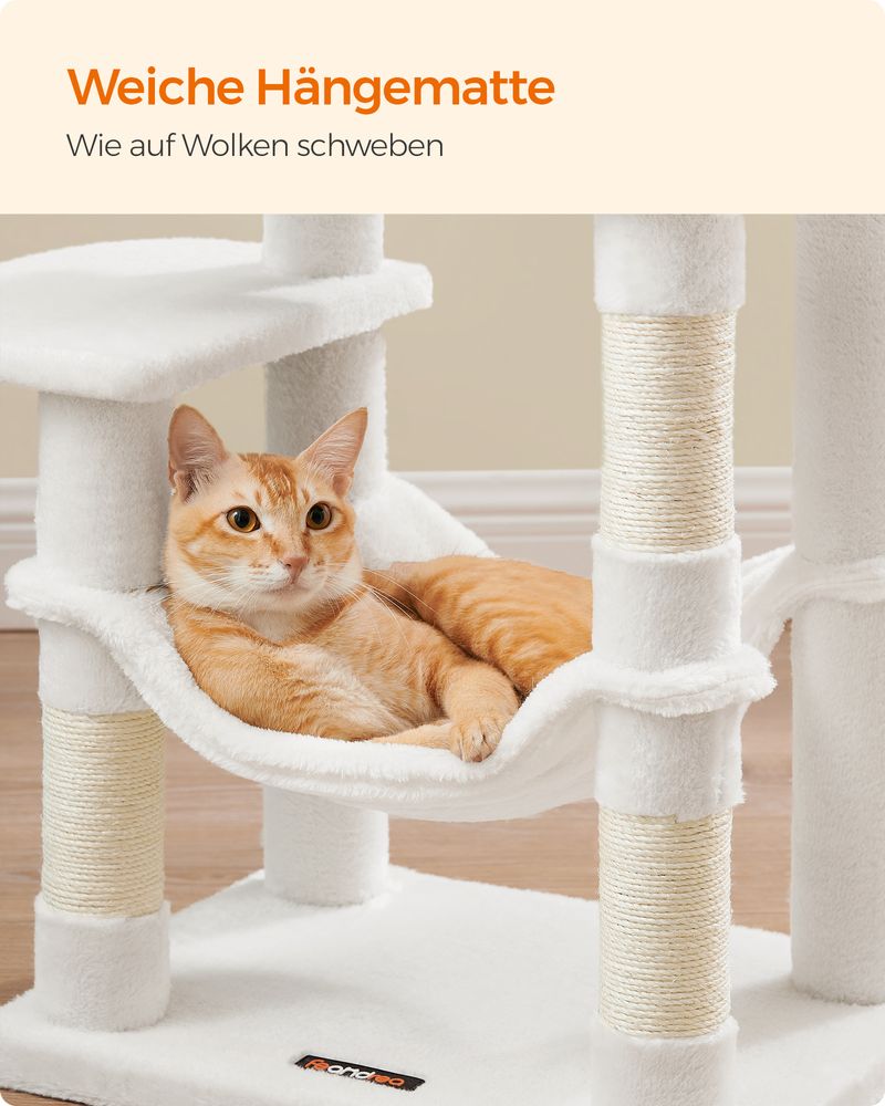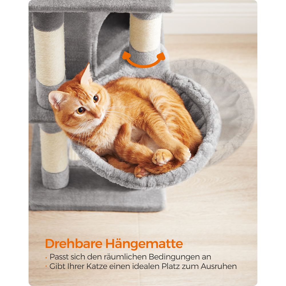 Katzenkratzbaum mit Hängematte und Aussichtsplattformen – Komfortabler und stabiler Kratzturm für 1 bis 2 Katzen