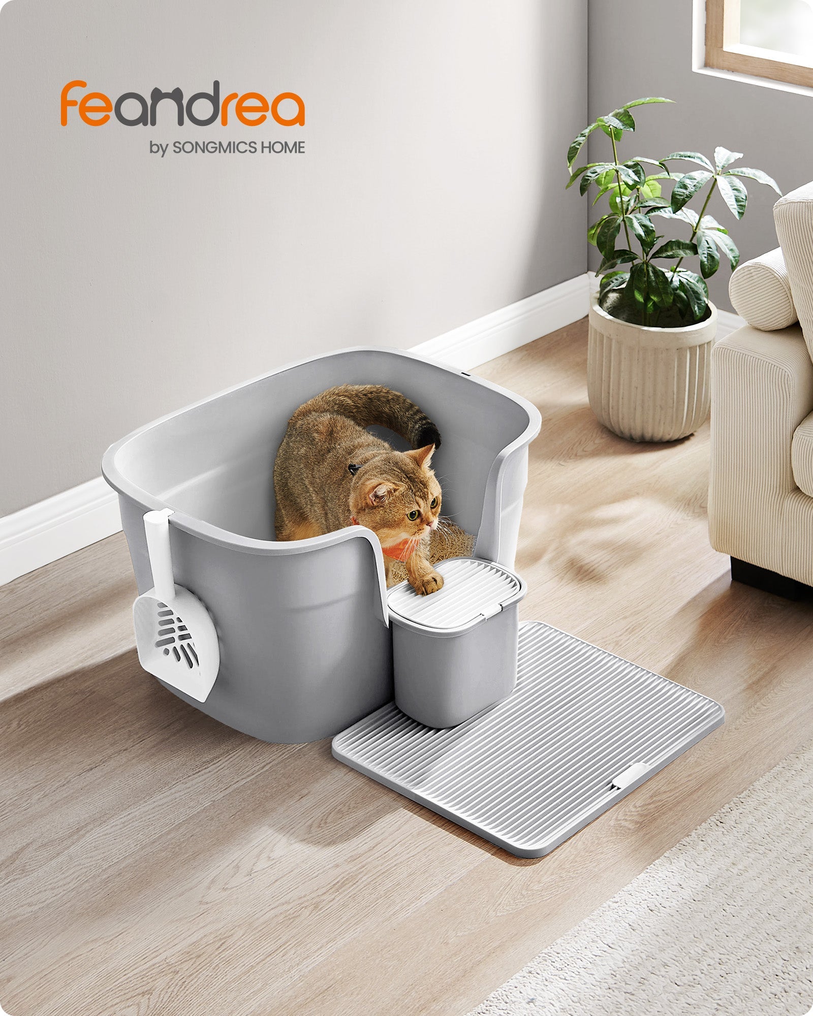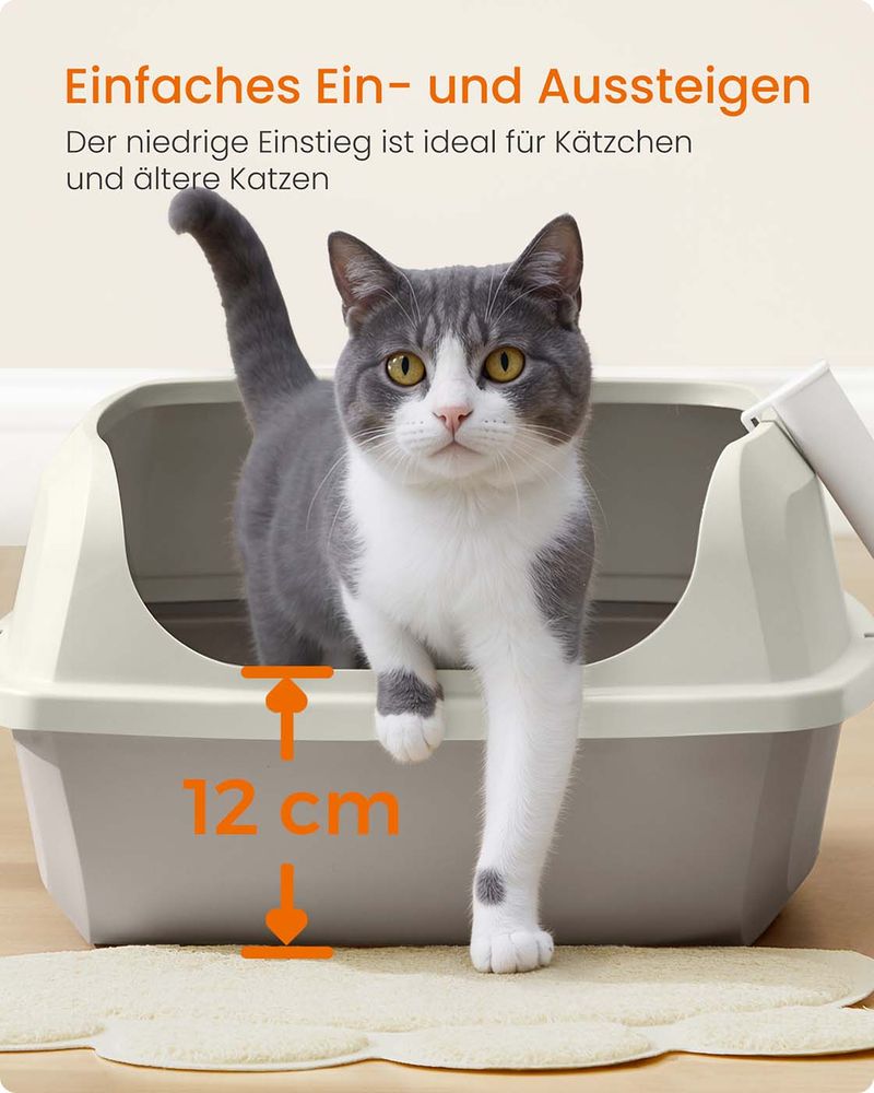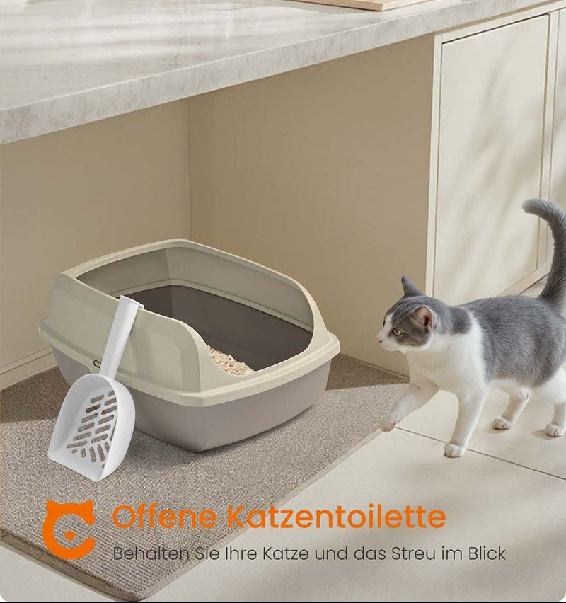 Katzentoilette XL – Offene Oberseite – Hohe Seitenwände – Mit Schaufel – Leicht zu reinigen – Geeignet für große Katzen