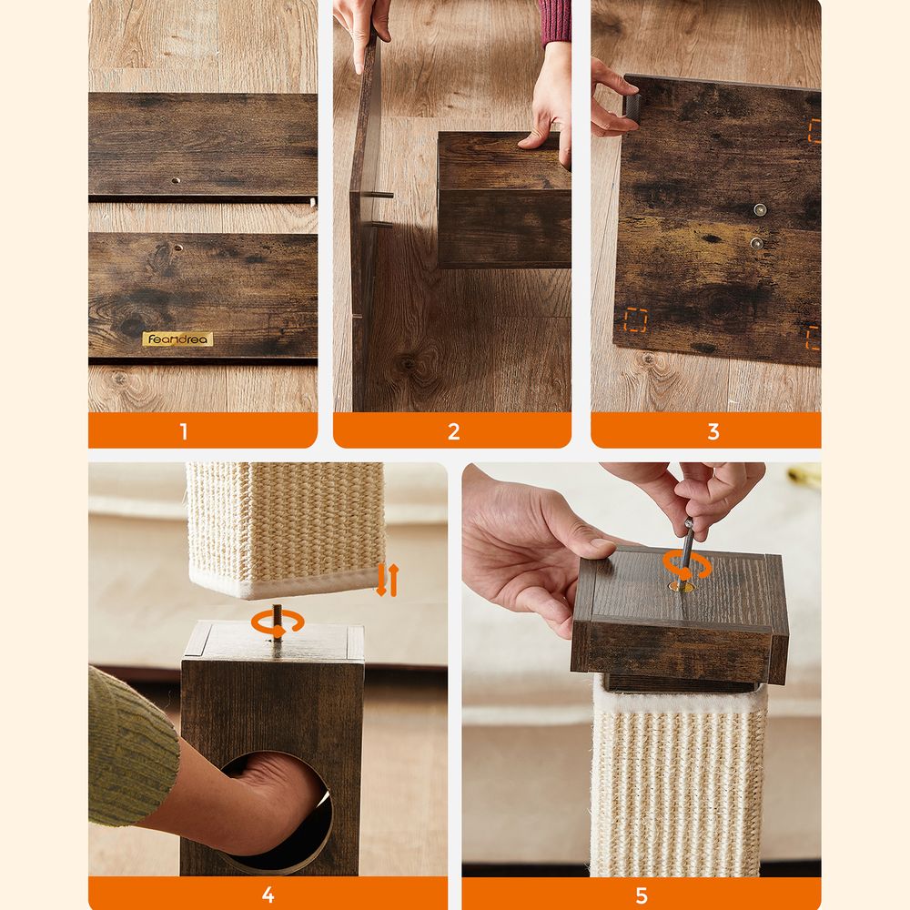 Der Kratzbaum ist mit strapazierfähigem Sisalseil umwickelt, das scharfen Krallen widersteht. So hat Ihre Katze Tag für Tag langanhaltenden Kratzspaß.