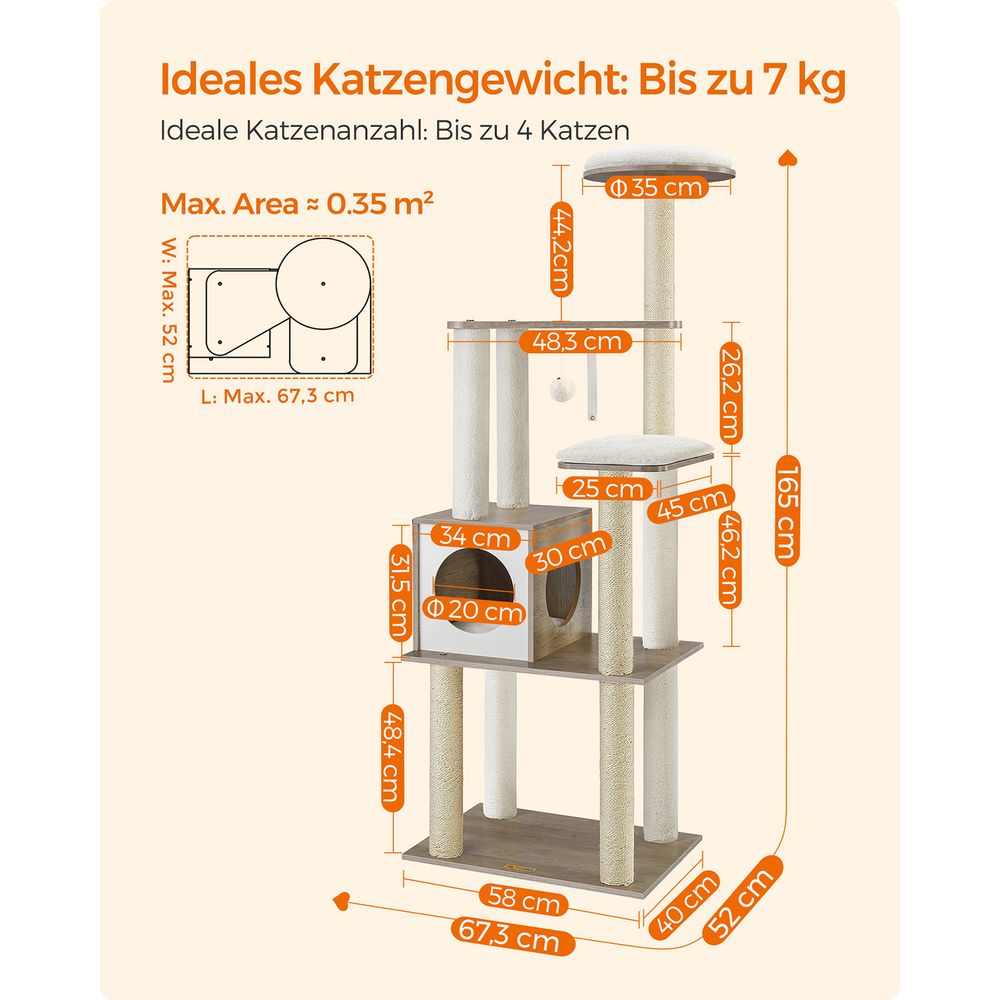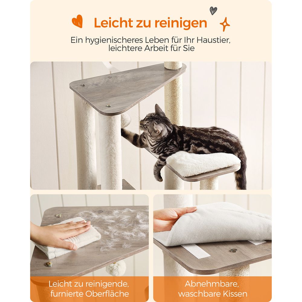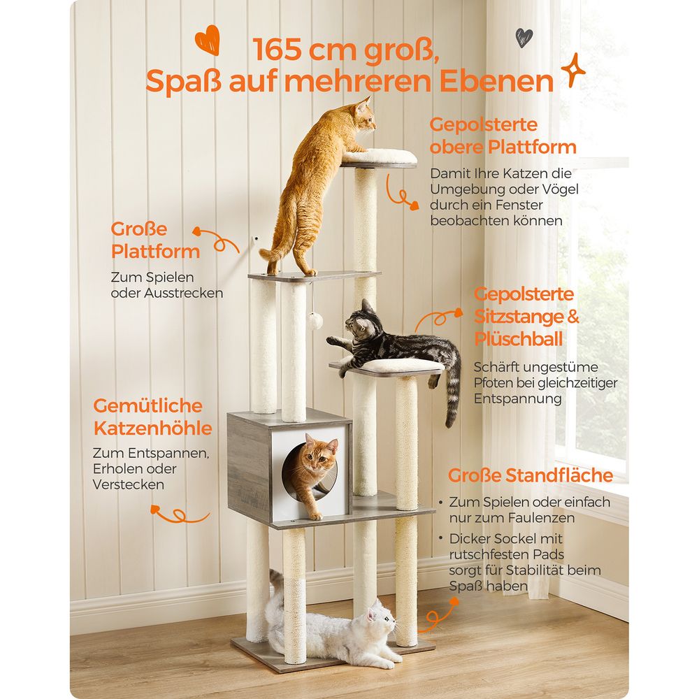 Moderner Katzenbaum 165 cm – Stilvolles Katzenmöbel mit weichen Kissen, Kratzstämmen und abnehmbaren Bezügen