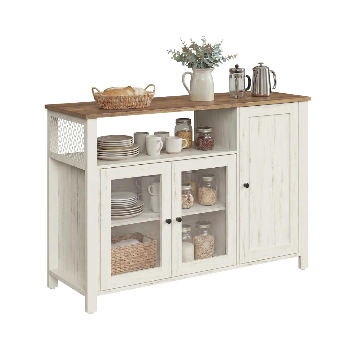 Sideboard – Küchenschrank mit 3 Türen – Aufbewahrungsschrank für Wohnzimmer, Esszimmer oder Küche – Landhausstil – 110 cm breit