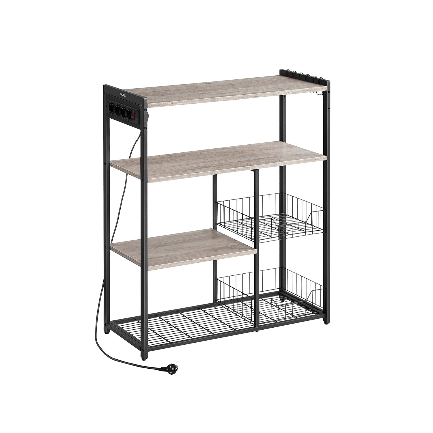 Küchenregal mit Steckdose – 80 cm breit – mit Gitterkörben, 6 Haken und mehreren Ablagen – Mikrowellenregal im Industrie-Look