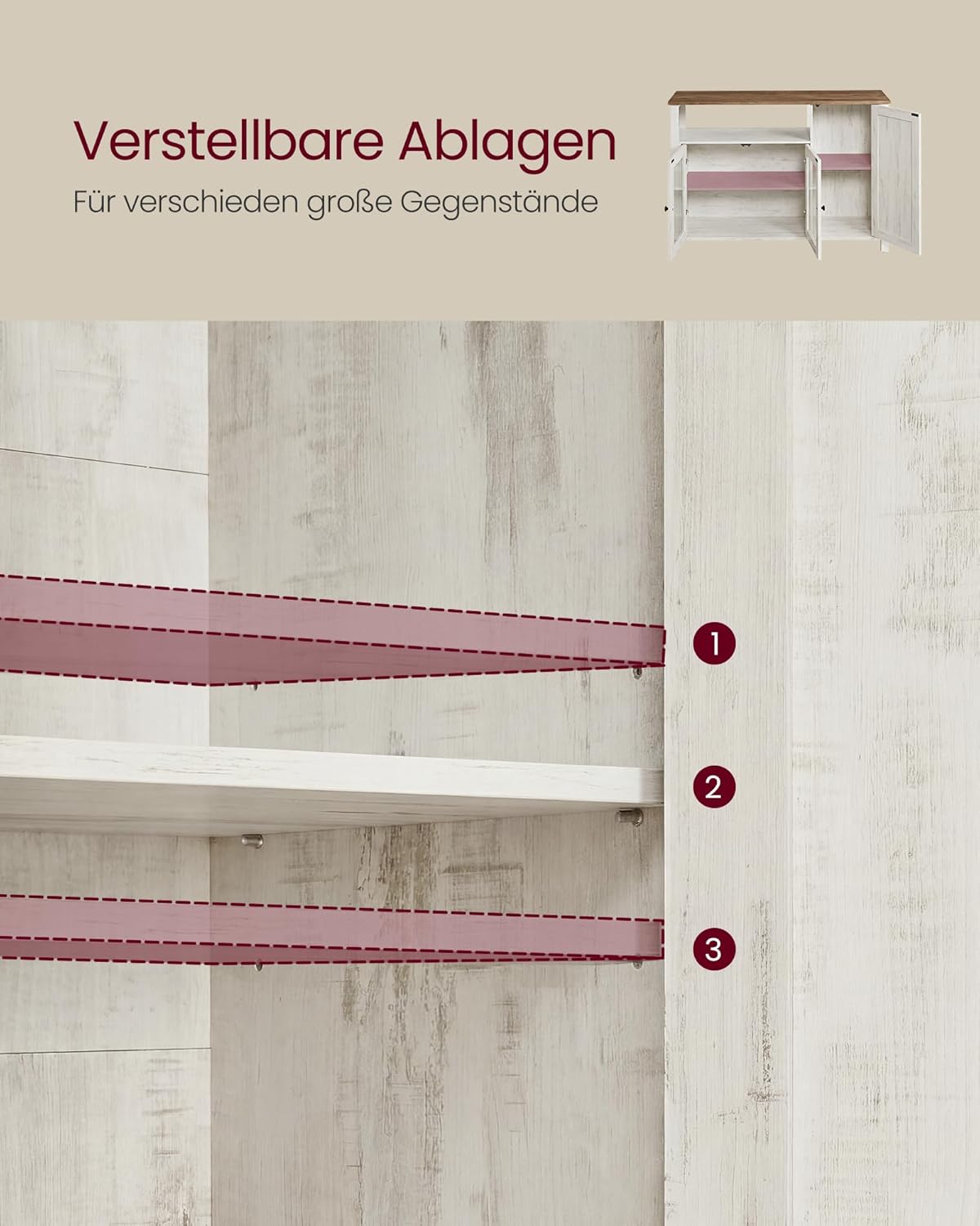 Sideboard – Küchenschrank mit 3 Türen – Aufbewahrungsschrank für Wohnzimmer, Esszimmer oder Küche – Landhausstil – 110 cm breit