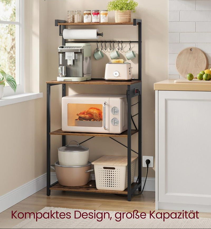 Küchen-Standregal mit Steckdose – Mikrowellenregal mit verstellbarem Regalboden – 60 x 40 x 140 cm – Industriedesign