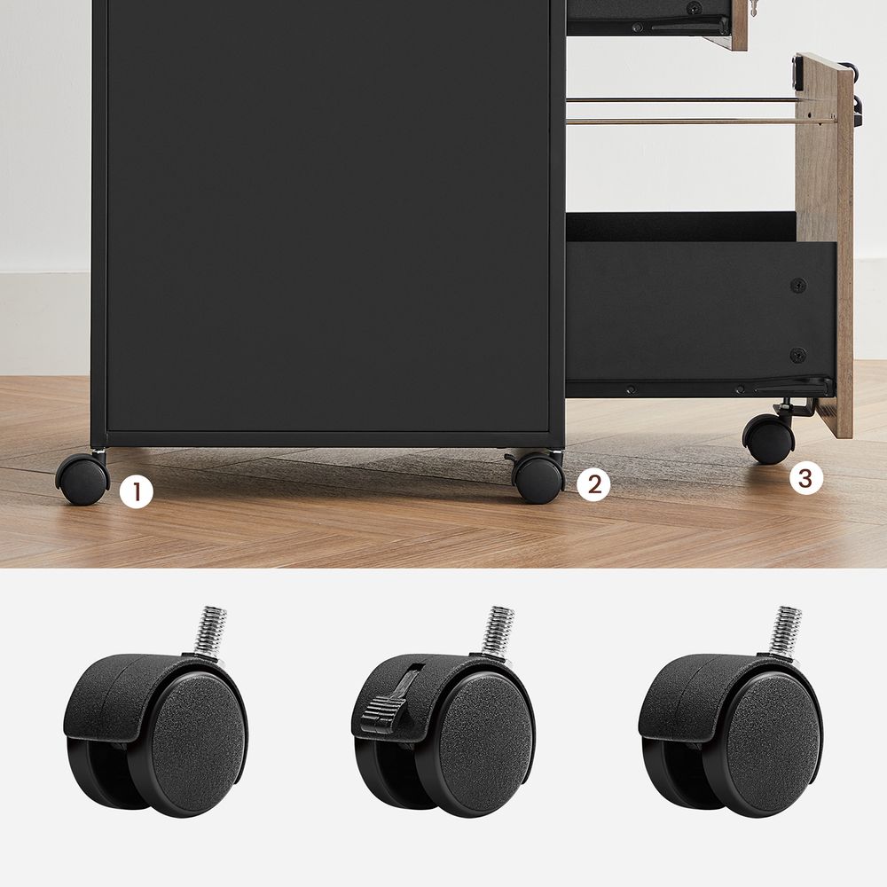 Mit seiner Kombination aus schwarzem Stahl und warmem Holzdekor passt dieser Rollcontainer perfekt in ein modernes Homeoffice, Wohnzimmer oder unter einen Schreibtisch. Dank seiner kompakten Größe von 44 x 42 x 69 cm lässt er sich leicht verstauen.