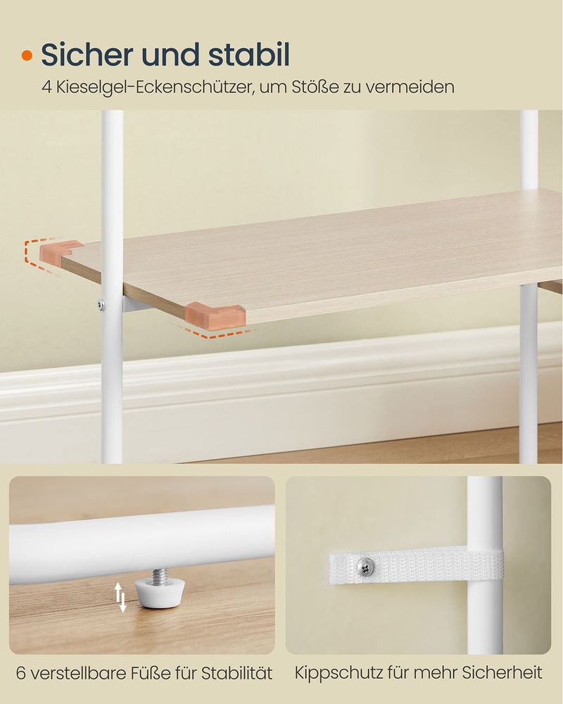 Ausziehbarer Kleiderständer auf Rollen – Kleiderständer 83-120 cm – Mit Schuhablage – 45 kg Tragkraft
