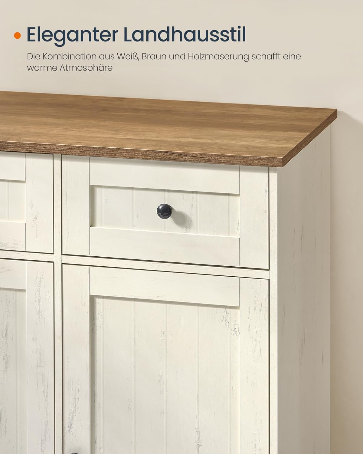 Sideboard – Küchenschrank mit Arbeitsplatte und verstellbaren Einlegeböden – Weiß und Honigbraun – Montage ohne Werkzeug