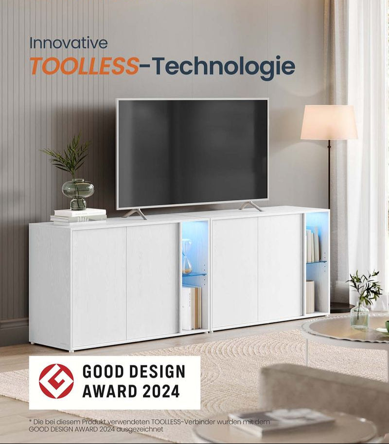 Lagerschrank mit LED-Beleuchtung - Sideboard mit offenen und geschlossenen Fächern