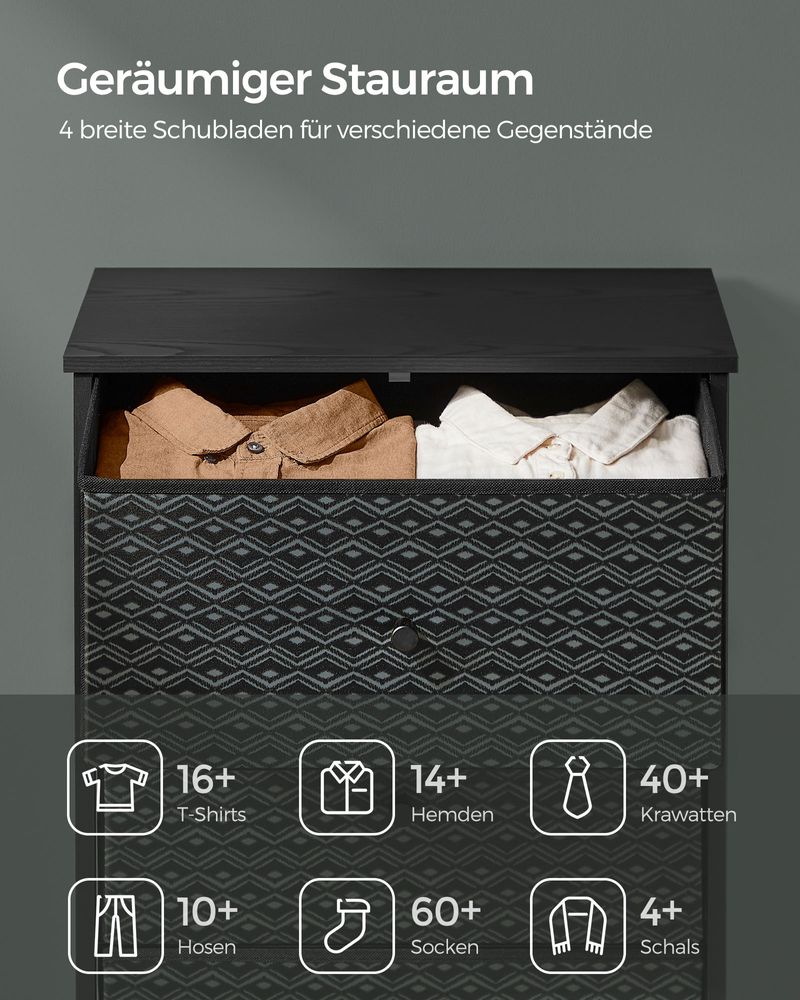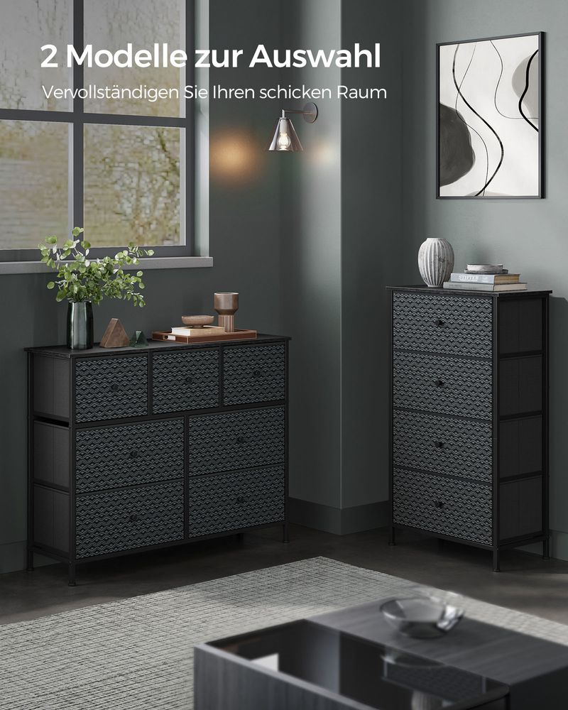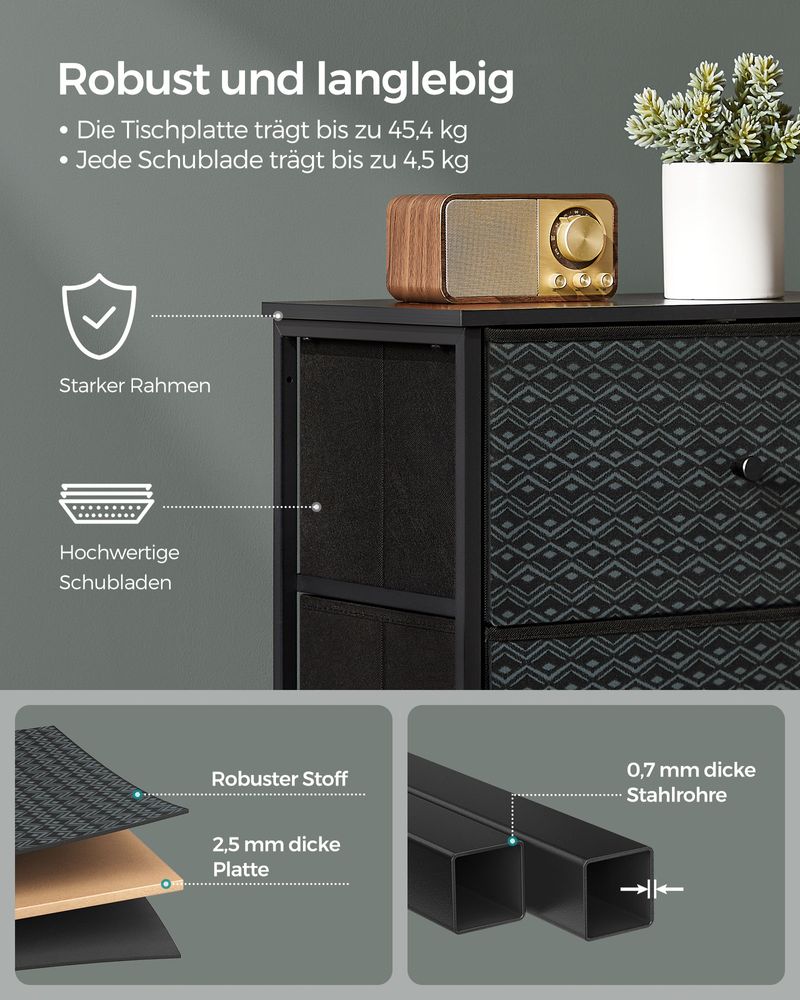 Kommode mit 5 Stoffschubladen – Schrank für Schlaf- oder Wohnzimmer – mit Seitenleisten und erhöhtem Rand – 98 cm breit