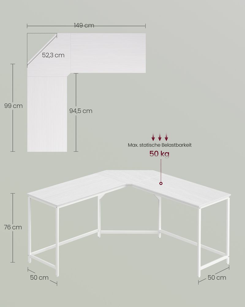 L-förmiger Schreibtisch – Eckschreibtisch mit Kabeldurchführung – Schwarz – 149 x 149 cm – Geräumig und platzsparend – Bis zu 50 kg belastbar