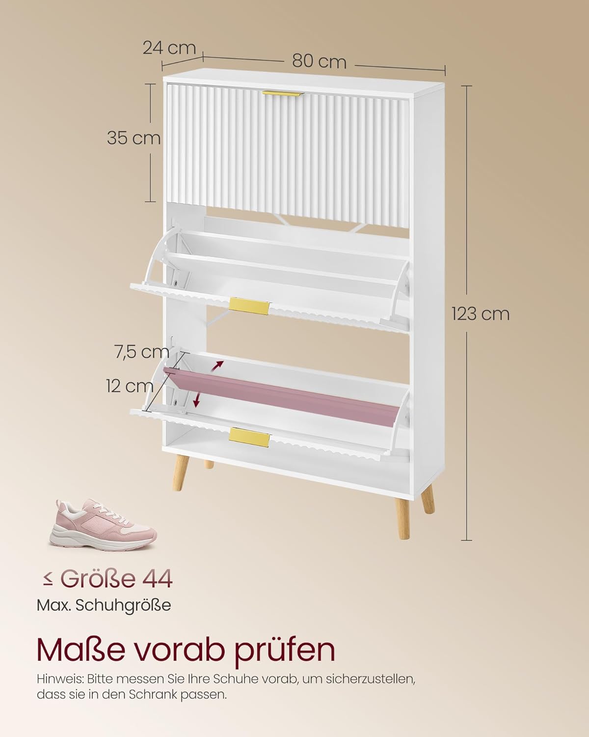 Schuhschrank mit 4 Klappen – Schmales Design – Verstellbare Fächer